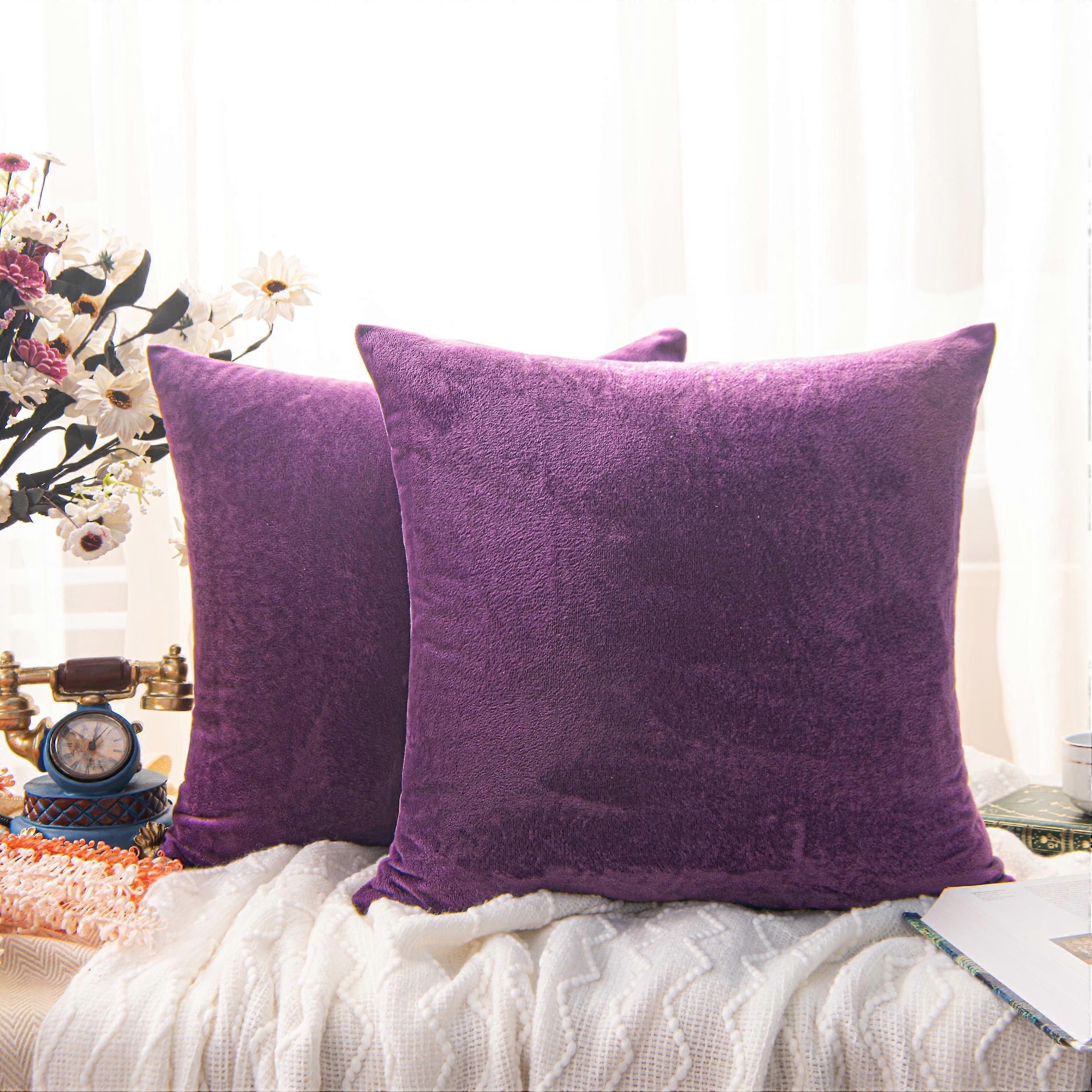 Flxxie Ultra Fluffy Soft Velvet Decorative Solid Color Throw Pillow Simple Square Covers Cushion Case 2 Pieces, 20" x 20", Purple