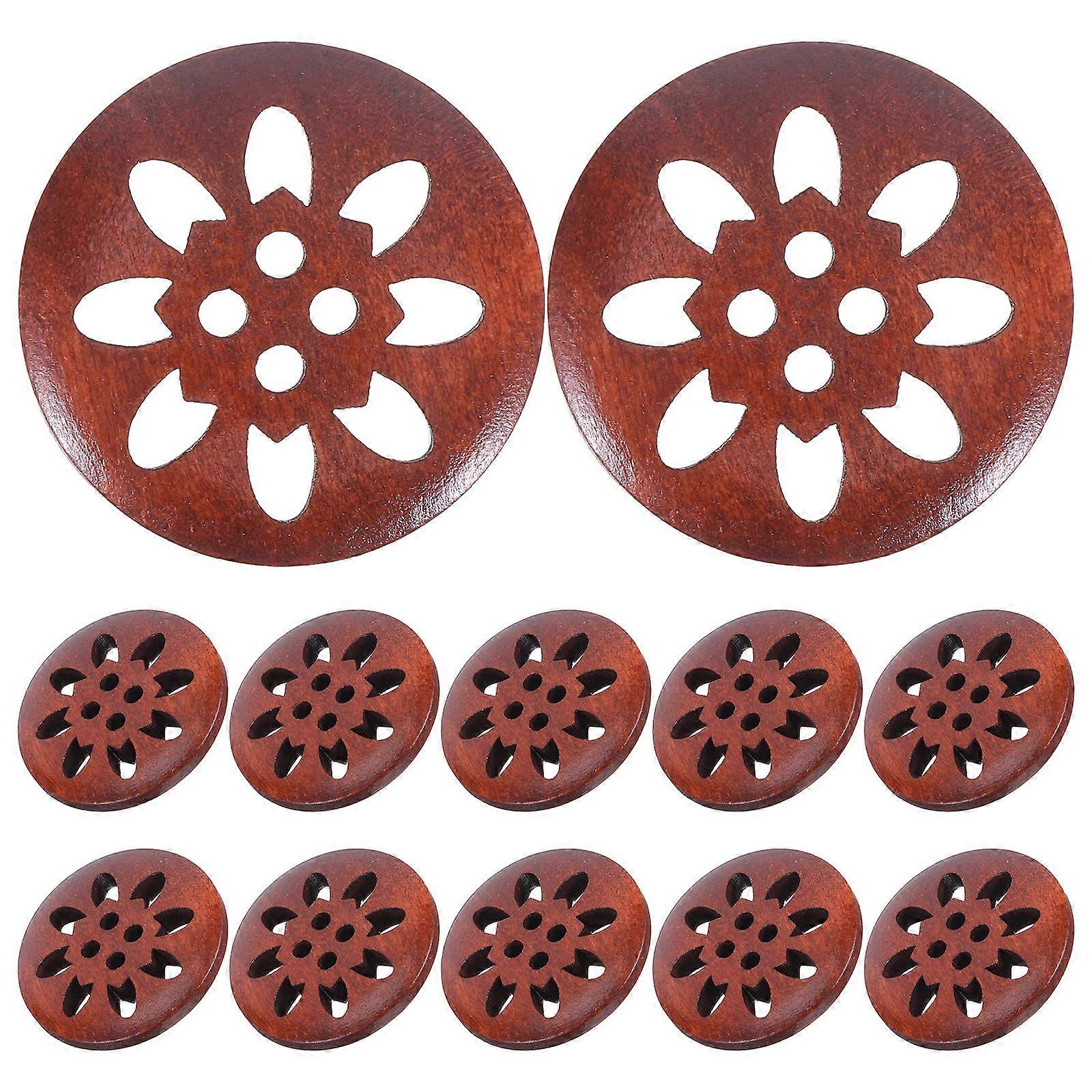 Wood Flower Buttons Wood Sewing Buttons for DIY Crafts and Clothes 75Pcs
