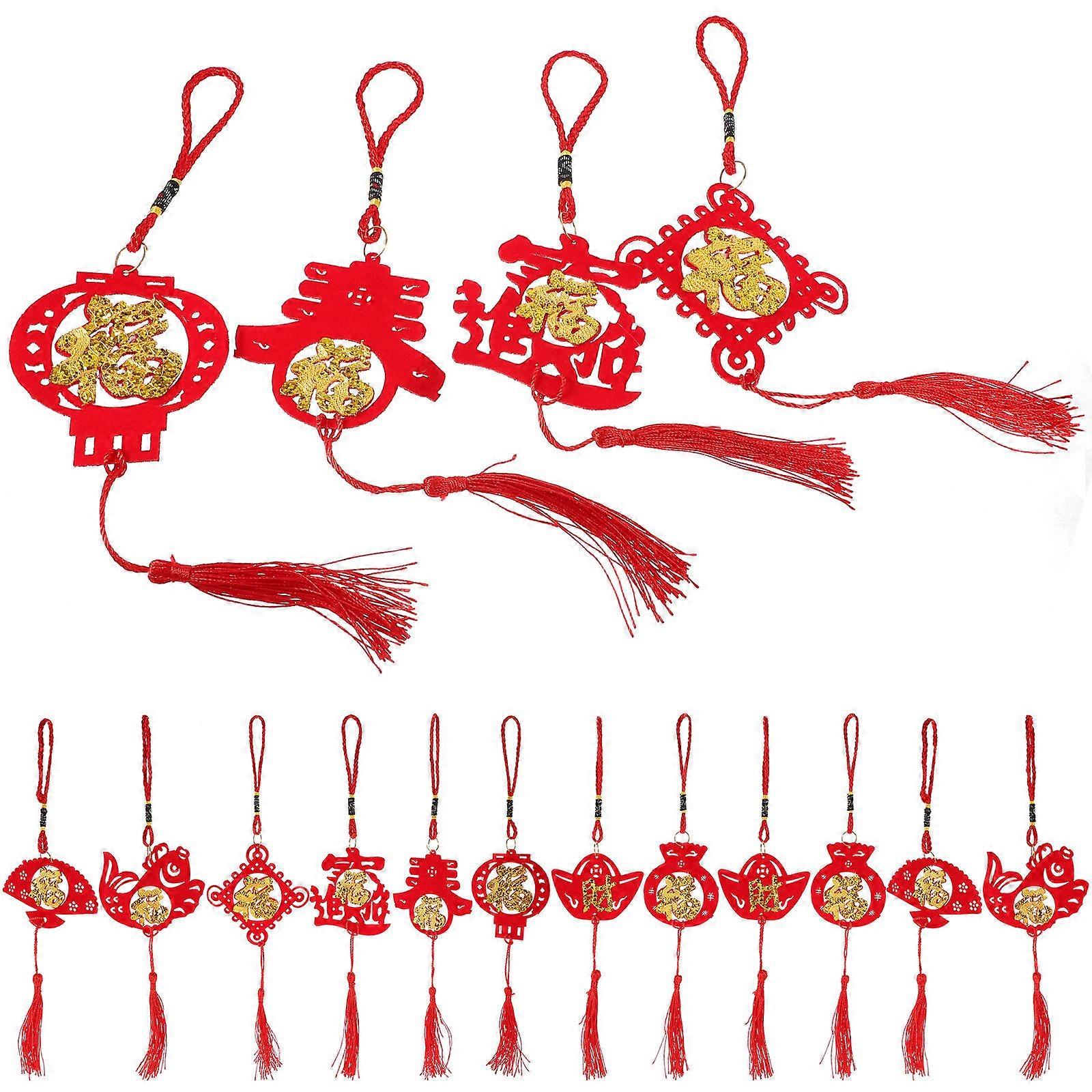 Festive Ornament Bonsai Pendant for Home Use 48Pcs Red Spring Festival Decor