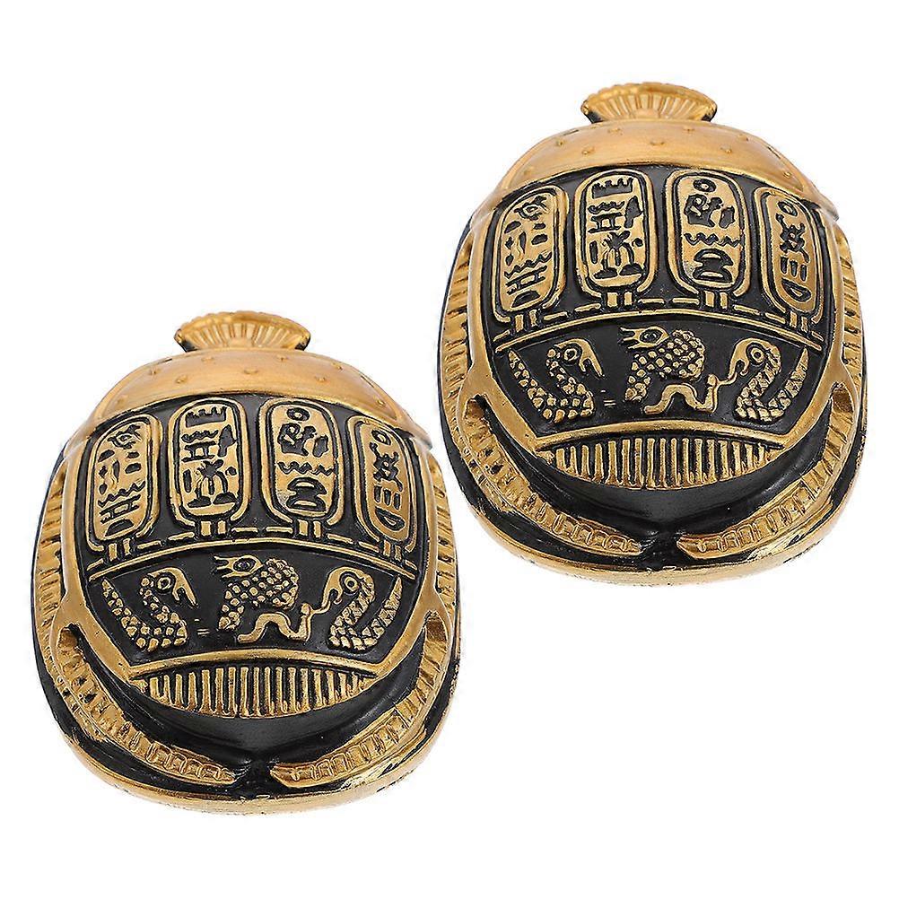 Ancient Egyptian Scarab Beetle Figurine for Decor 2Pcs Resin Collectible