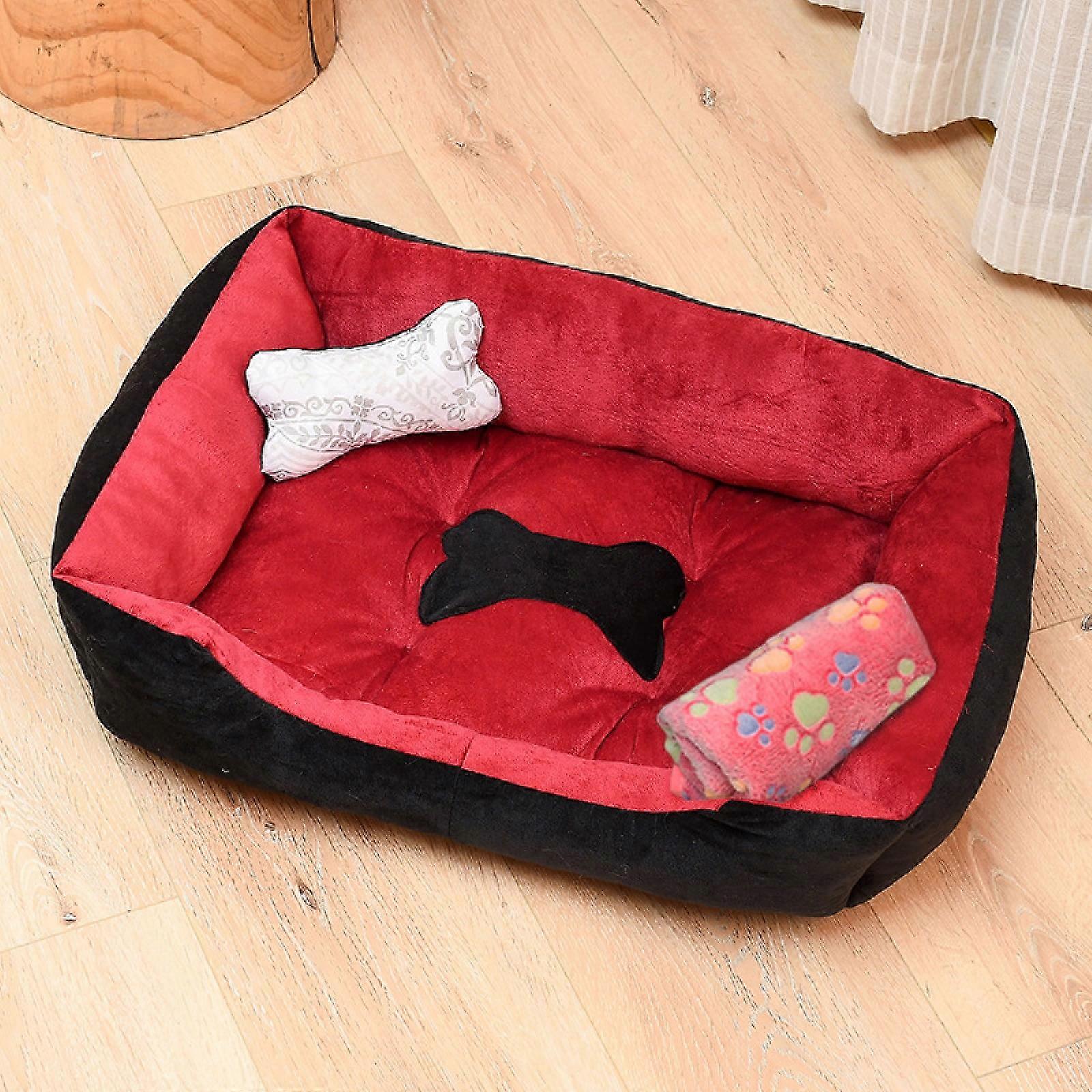 Doghouse Cathouse Pet Bed Golden Retriever Teddy Warm Four Seasons Summer Mat Pet Mat Square Pethouse Dog Mattress,Red Black