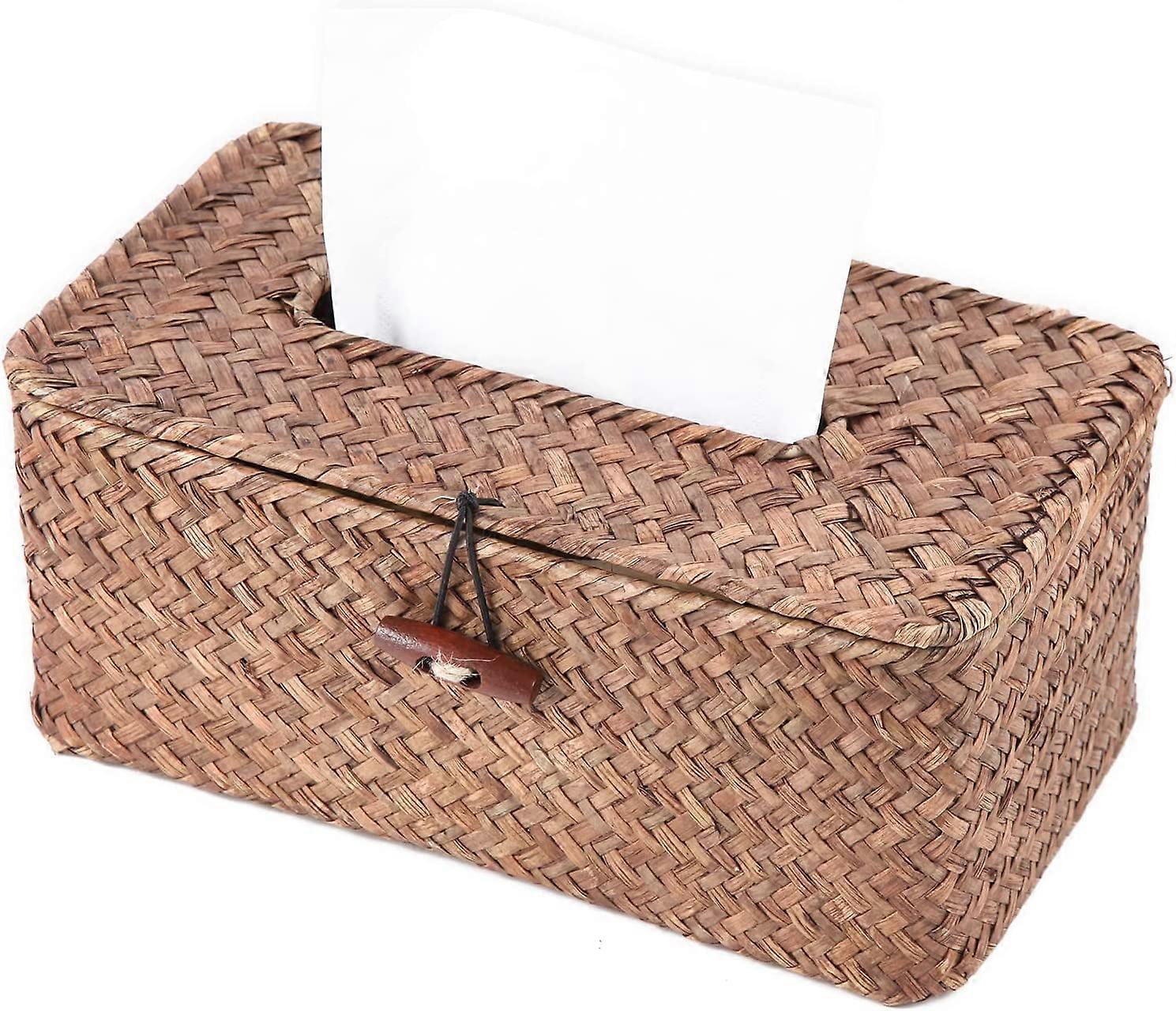 Wicker Tissue Box Cover, Rattan Facial Tissue Holder, Vintage Seagrass Napkin Dispenser for Bathroom, Bedroom, Living Room (Brown)