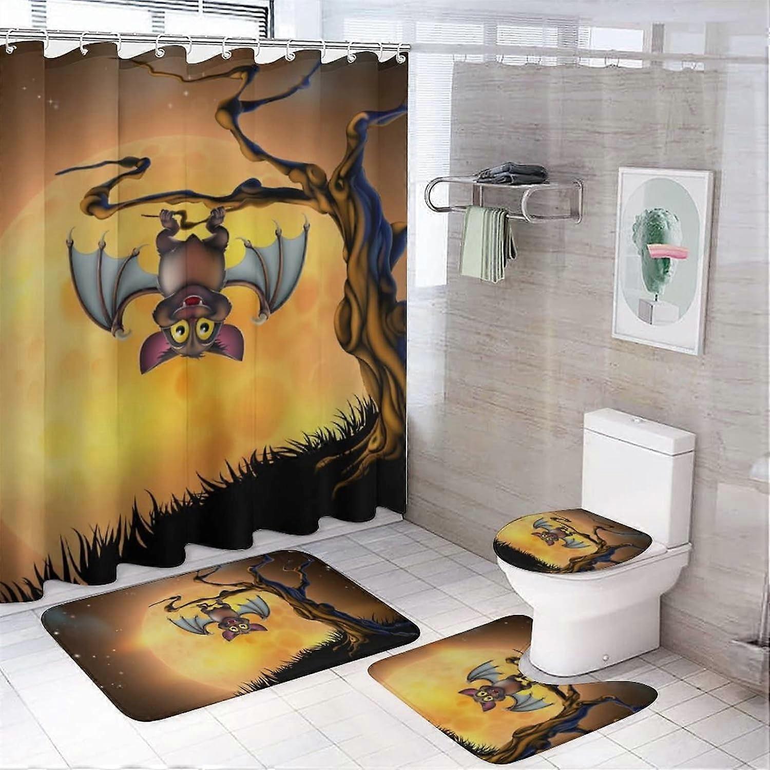 Halloween Bathroom Set of 4 with Non-Slip Rugs, Toilet Cover & Bath Mat, Shower Curtain (72"X72"), 12 Hooks, Waterproof - Compatible with Halloween