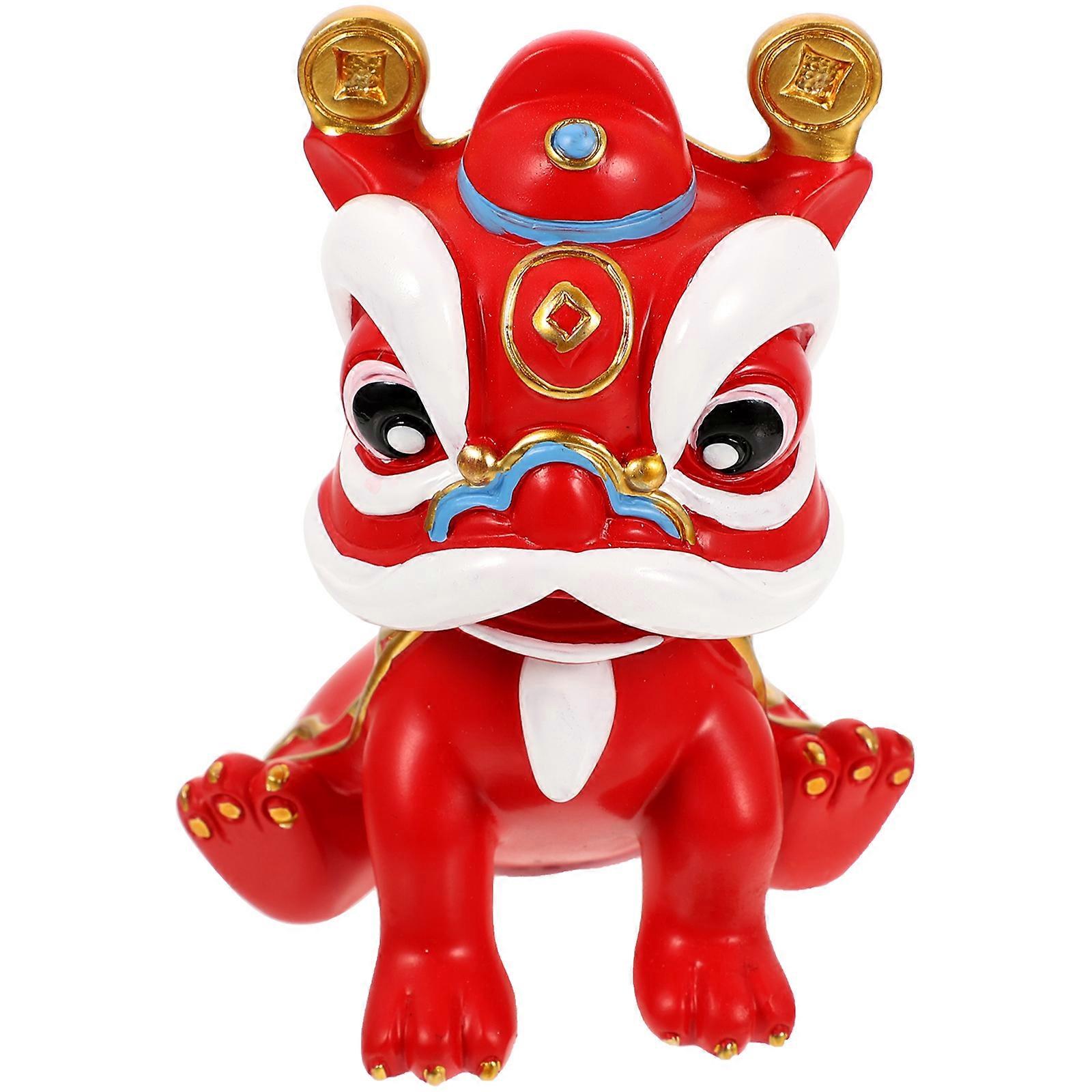 Resin Lion Shape Decoration Red Chinese Style for Decor