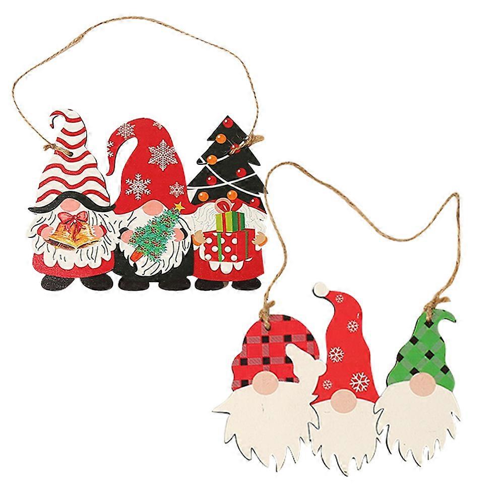 2PCS Christmas Wooden Hanging Ornaments, Xmas Gnome Decor, Elf Tree Hanging for Holiday Home Compatible with Rustic Xmas Themes