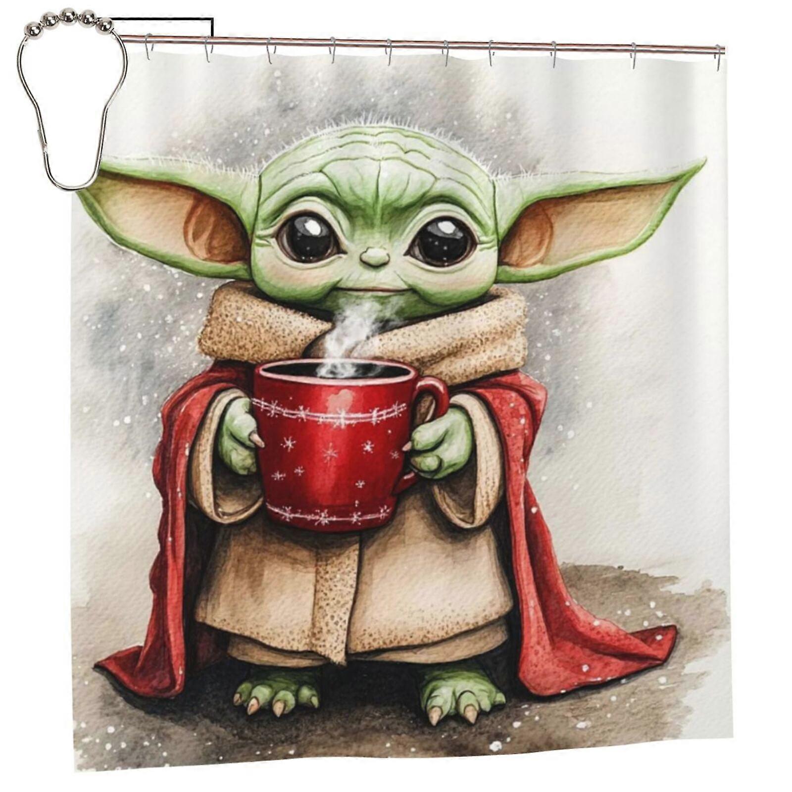 Cute Cartoon Star Wars Baby Yoda Shower Curtain Kids Bathroom Halloween Decor with 12 Curtain Hooks for Bathroom, Waterproof 72 x 72 inch