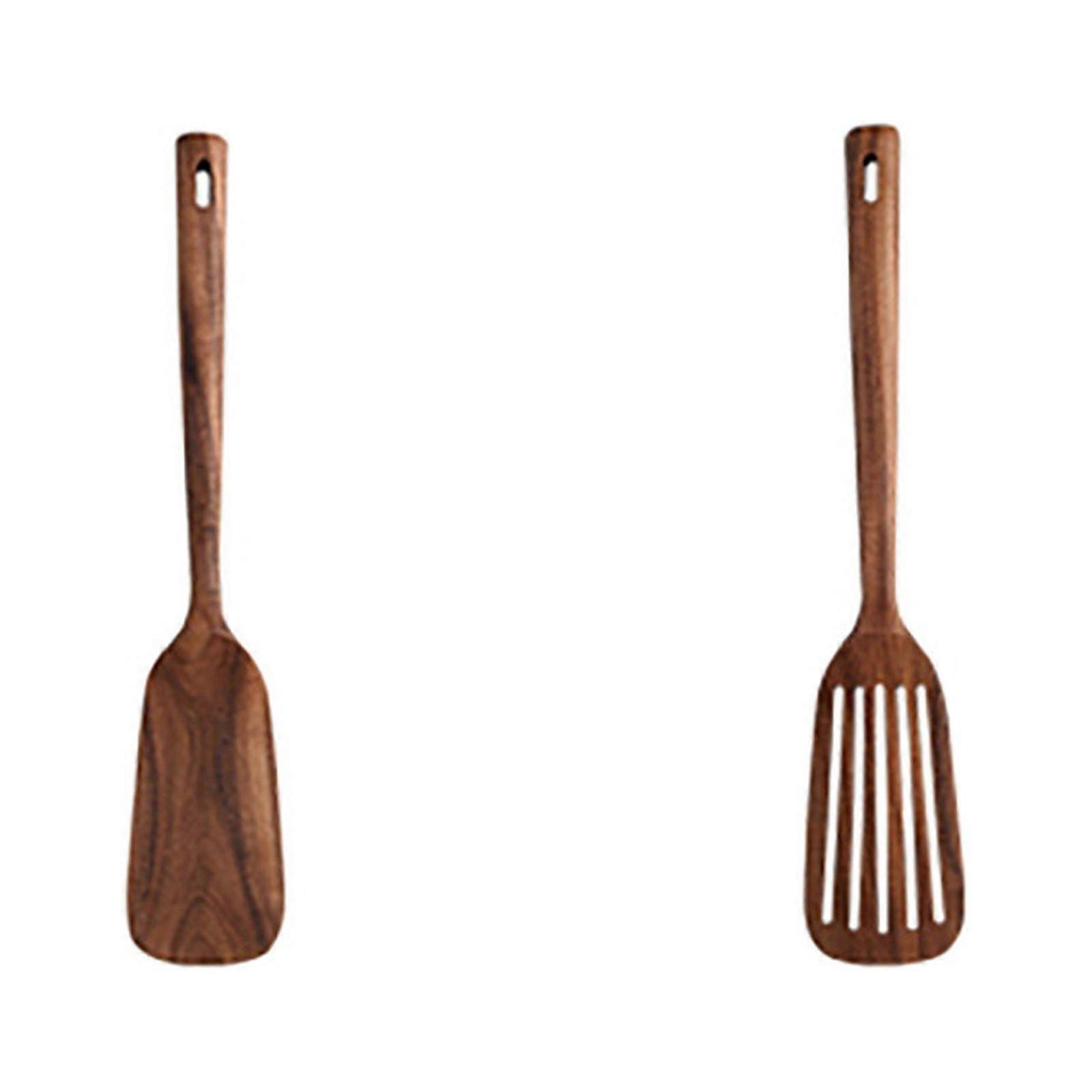 WRXMIJNHGSA Cooker 2PCS Spatula Long Handle Solid Wood Spatula Wood Household Non Stick Pan Cooking Spatula Kitchen Tools