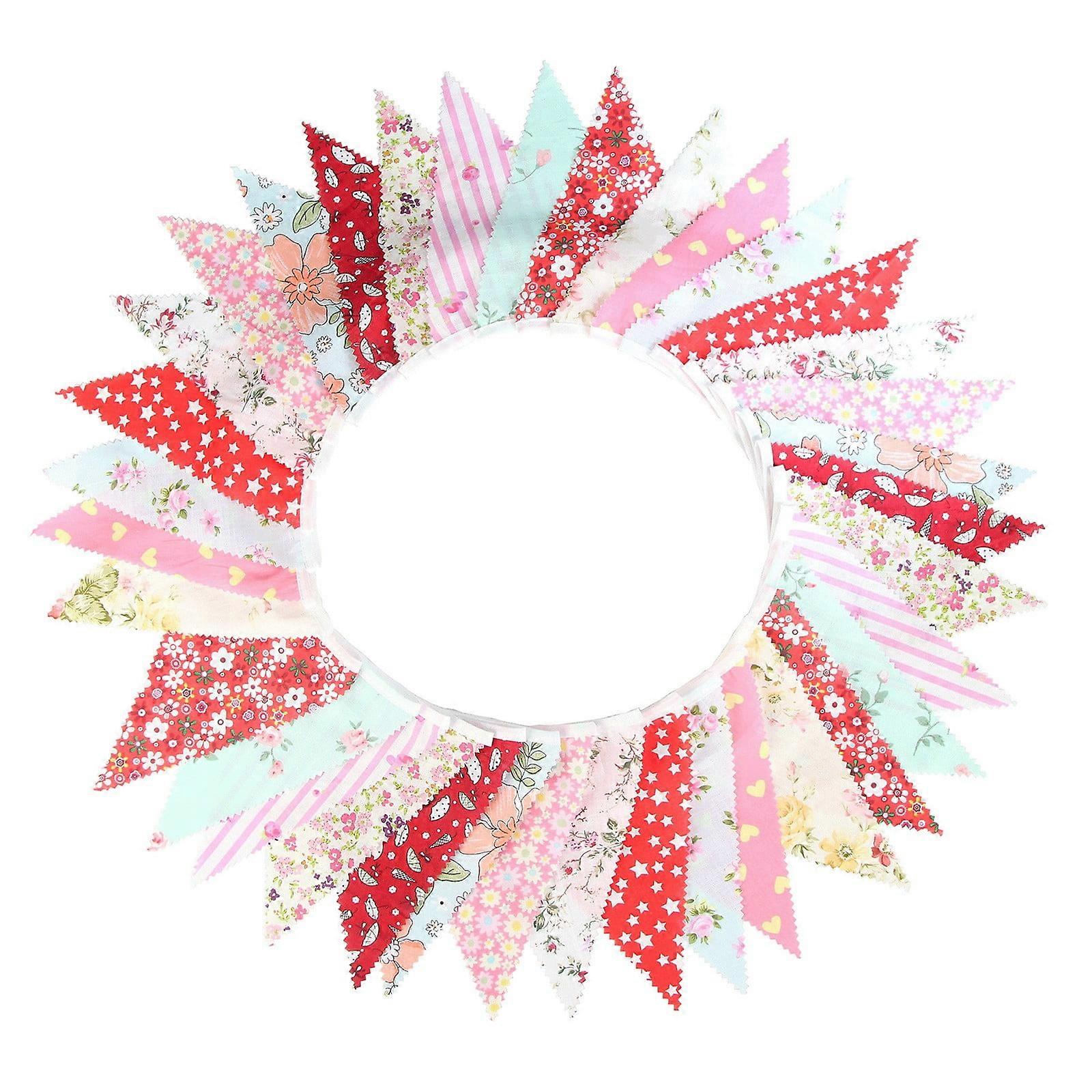 33 Ft Vintage Flower Fabric Bunting Banner 36 Triangle Flag for Party Decor