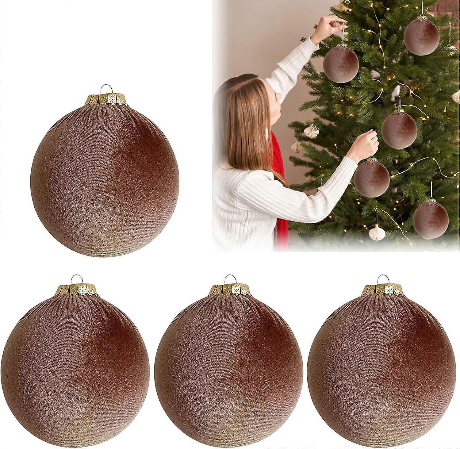 Christmas Saving Clearance! 4Pcs 4" Velvet Ornaments Balls, Soft Flocked Xmas Tree Decor, Compatible with Christmas Home Office Decoration