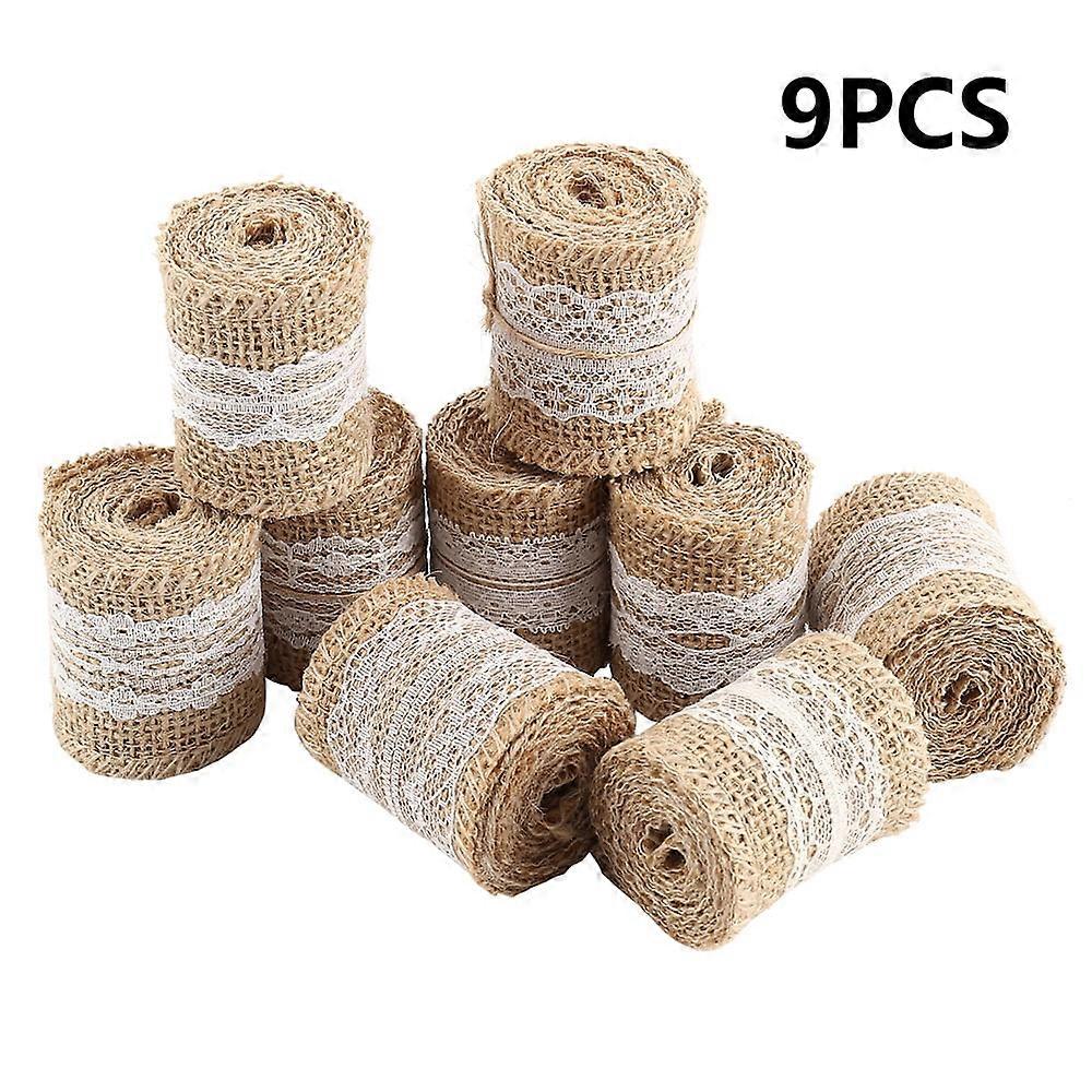Miuline 9Pack Burlap Ribbon Jute Hessian Linen White Lace Ribbon Roll Gift Wrap 5x100cm for Wedding Event Party Home Crafts Doc