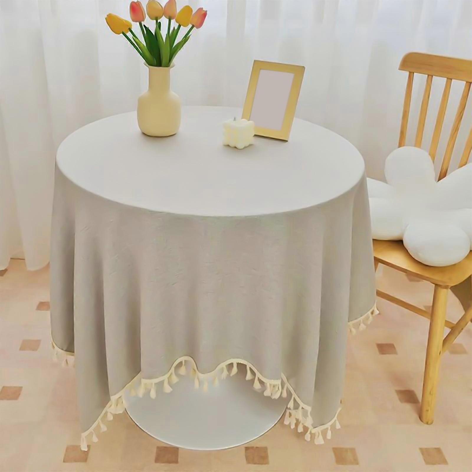 Ikohbadg Cotton Linen Blend Tablecloth 55x55 Inch, Fringe Edge, Easy Clean, Compatible with Small Tables, for Weddings, Parties, Indoor Outdoor Use