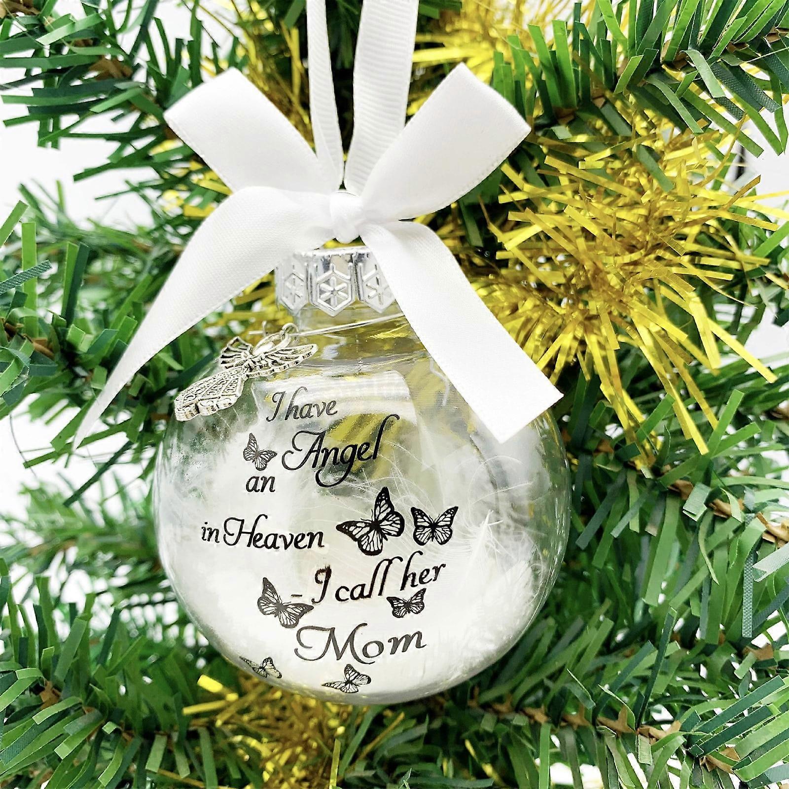 Harliver Clear Christmas Memorial Ornament, I Have an Angel in Heaven, Feather Ball Ornament Gift for Loss of Mom