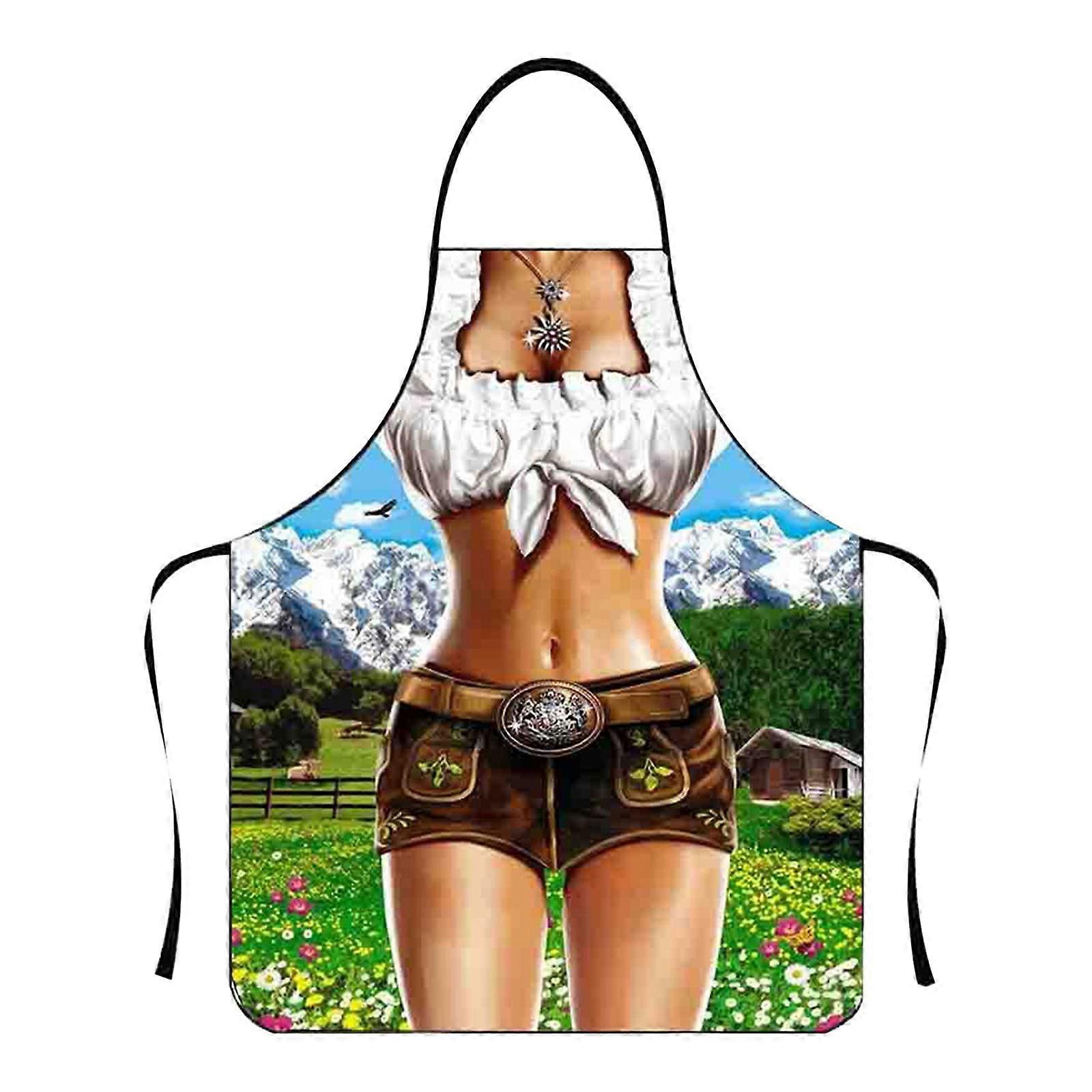 WRXMIJNHGSA Apron Sleeve Cover Funny Personality Creative Apron Muscle Men's Apron Bikini Series Cartoon Couple Apron Polyester Apron