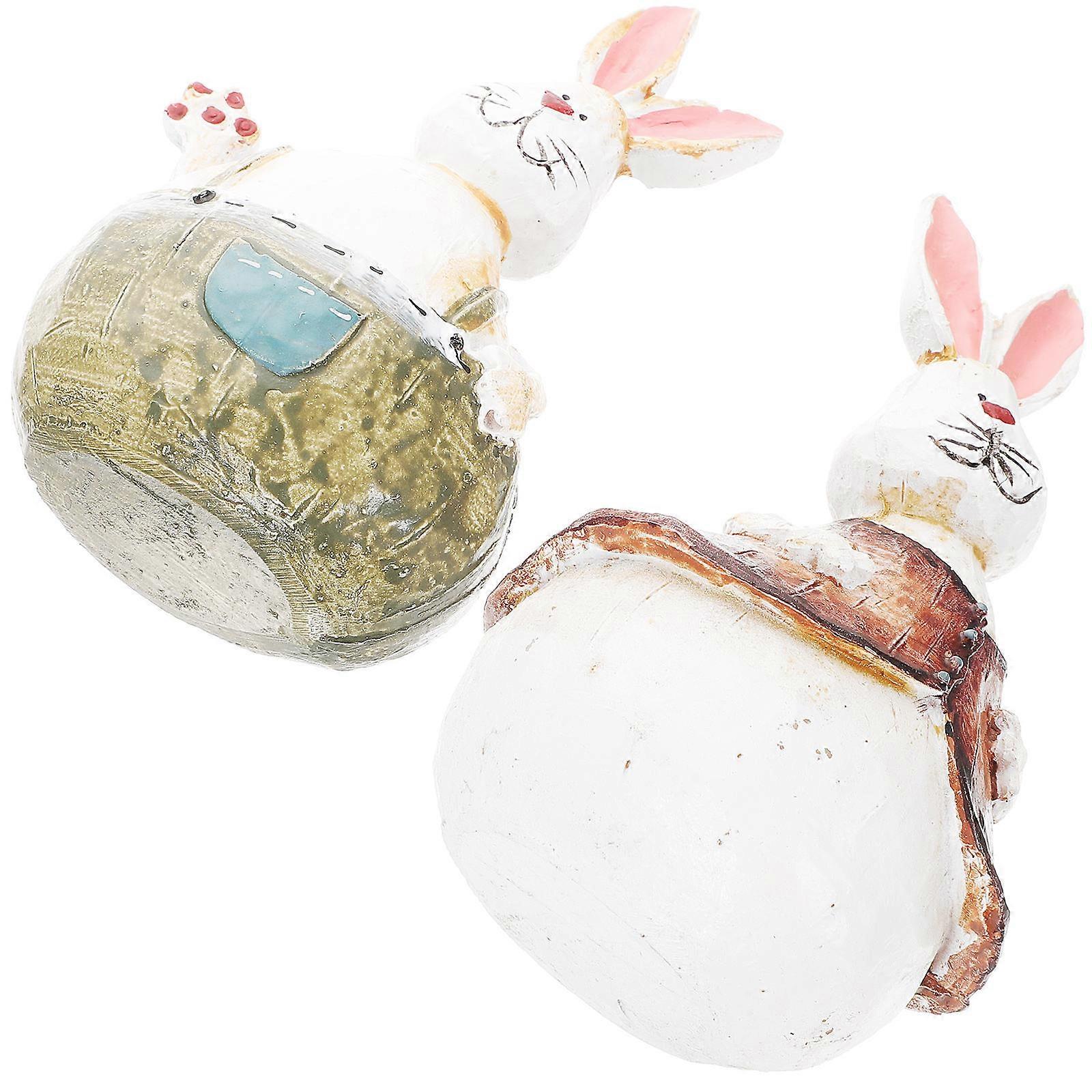 Resin Bunny Decor Rabbit Shape Craft Table Pastoral Style Decoration Multi 10.5X7CM For Home Desk 2Pcs