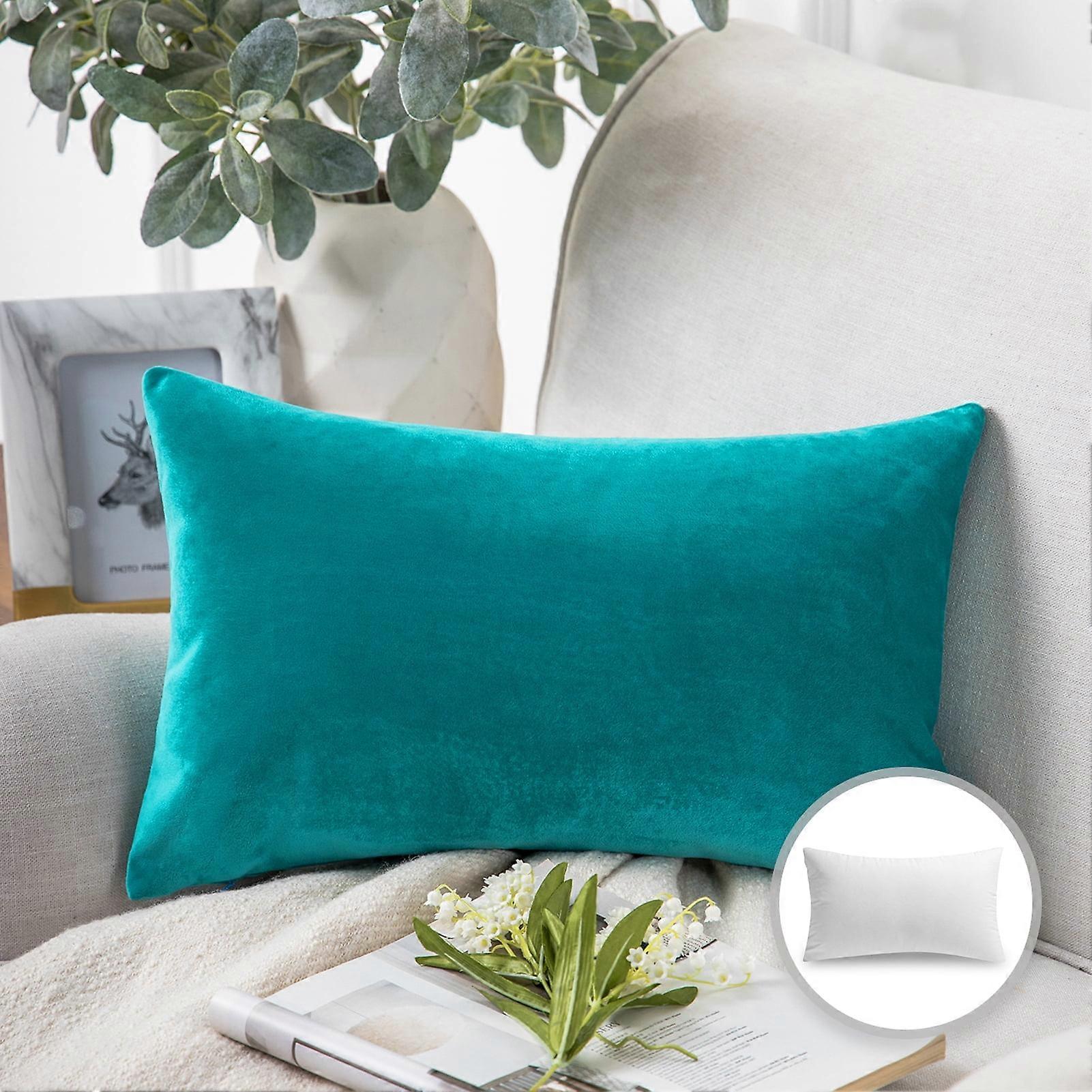 Phantoscope Soft Silky Velvet Series Decorative Throw Pillow, 12" x 20", Turquoise, 1 Pack