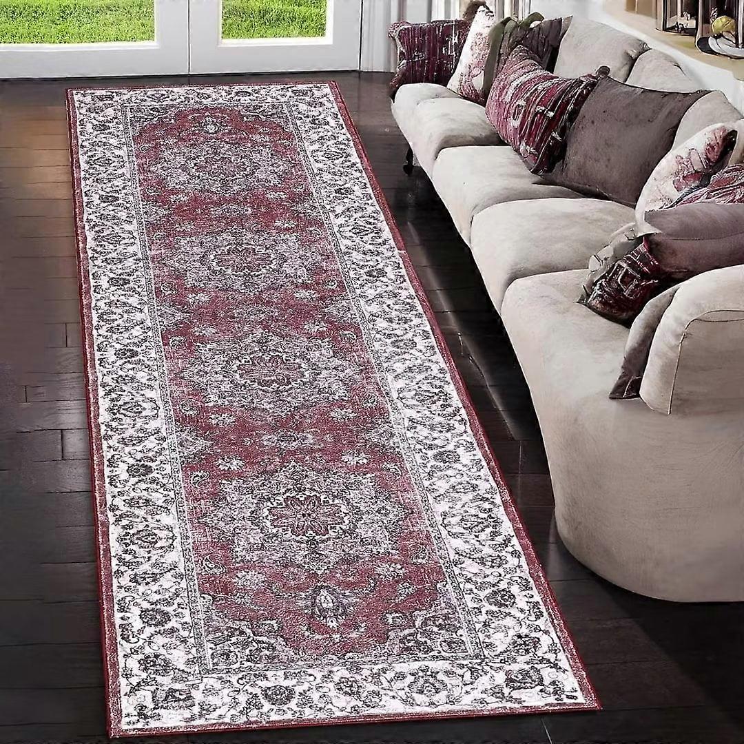 Haperlare Runner Rug 2x8 Ft, Brick Red, Boho Vintage Area Rug, Stain Resistant, Non-Slip, Low Pile, Machine Washable