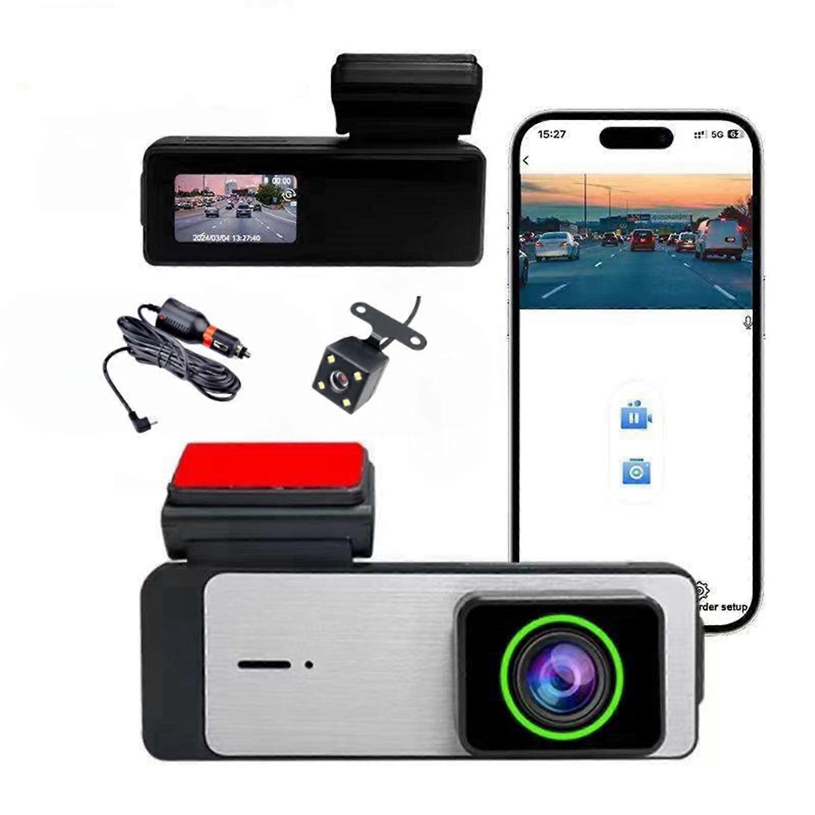 WiFi Dash Cam 1080P, Front and Rear with Infrared Night Vision, 140° Wide Angle, Motion Detection, 24h Parking Mode, Fully Functional