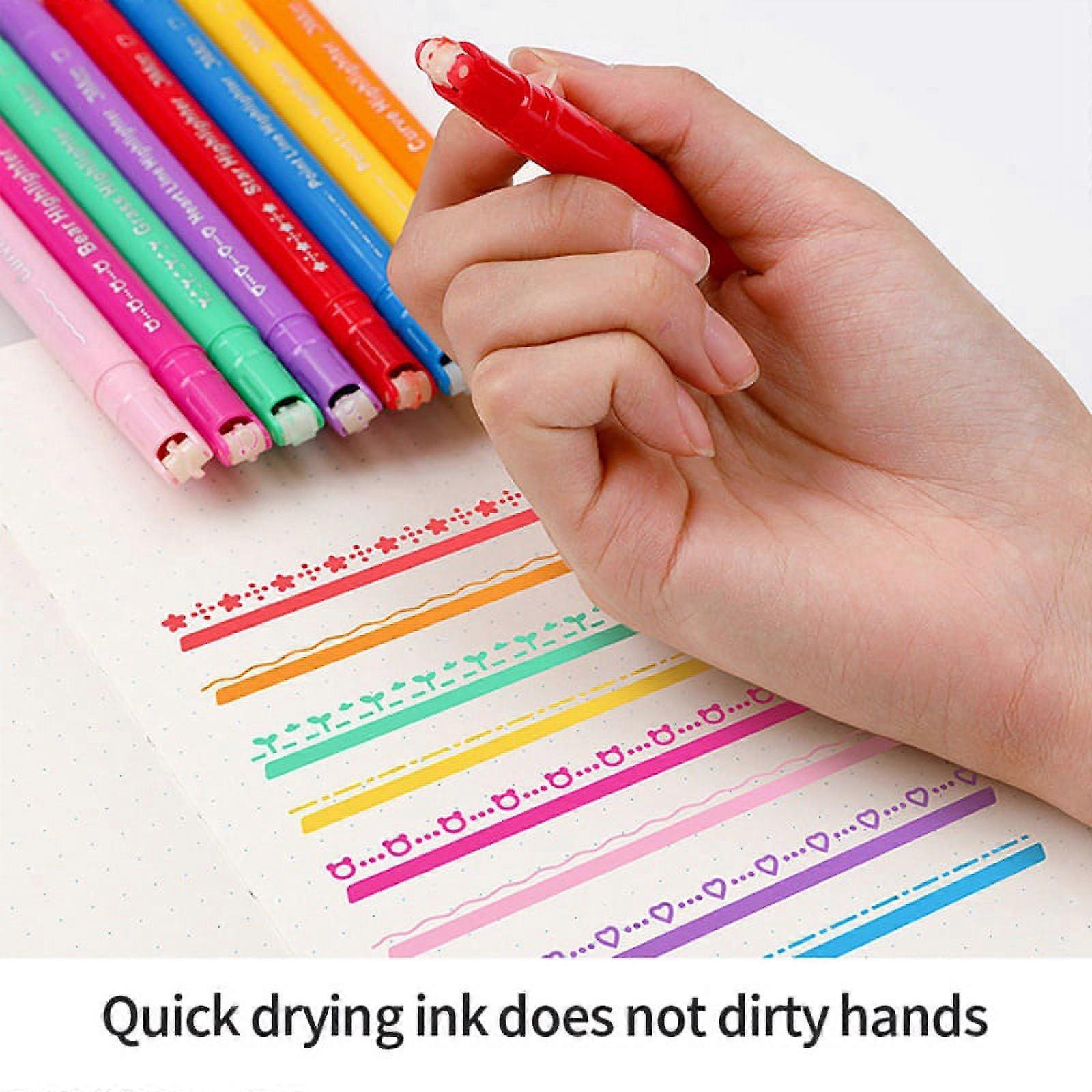 Aesthetic Highlighter Pen ,8 Different Shapes Dual Tip Markers for Kids Novelty Stationery School Supplies