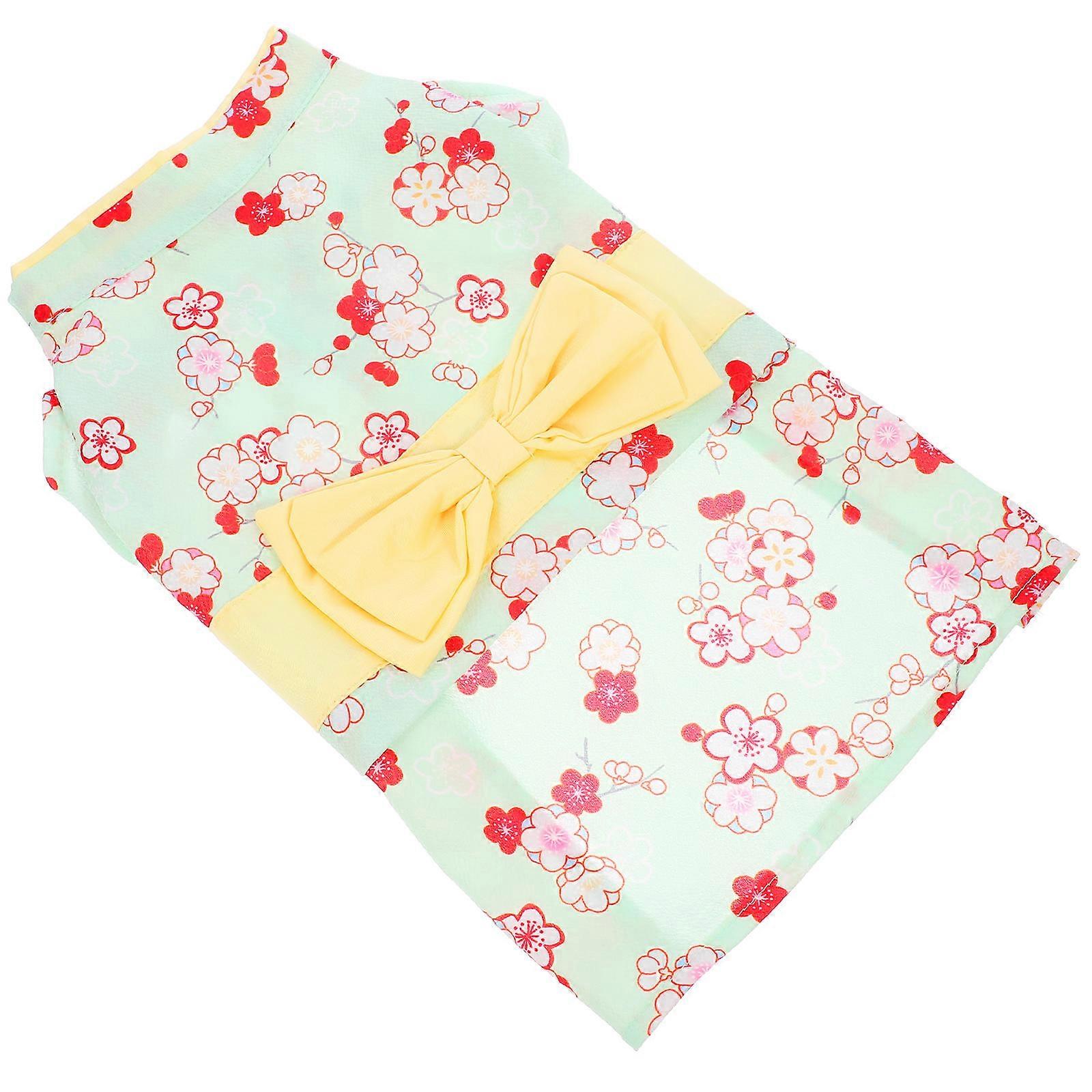 Dog Kimono Printed Clothes Pet Outfit for Wear 3Pcs Light Green