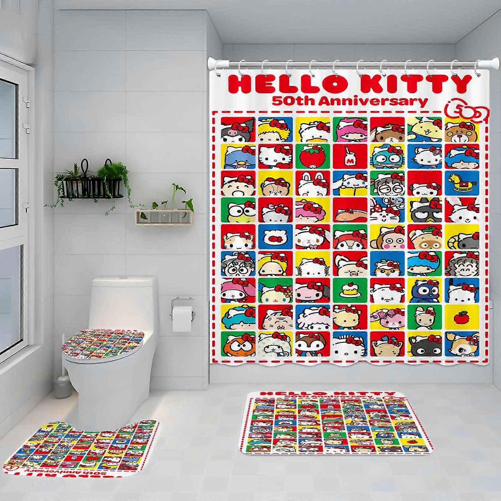 Cartoon Hello Kitty Shower Curtain Sanrio Cute 4 Piece Bathroom Interesting Decorations Sets Full Set Accessories Curtains Bath