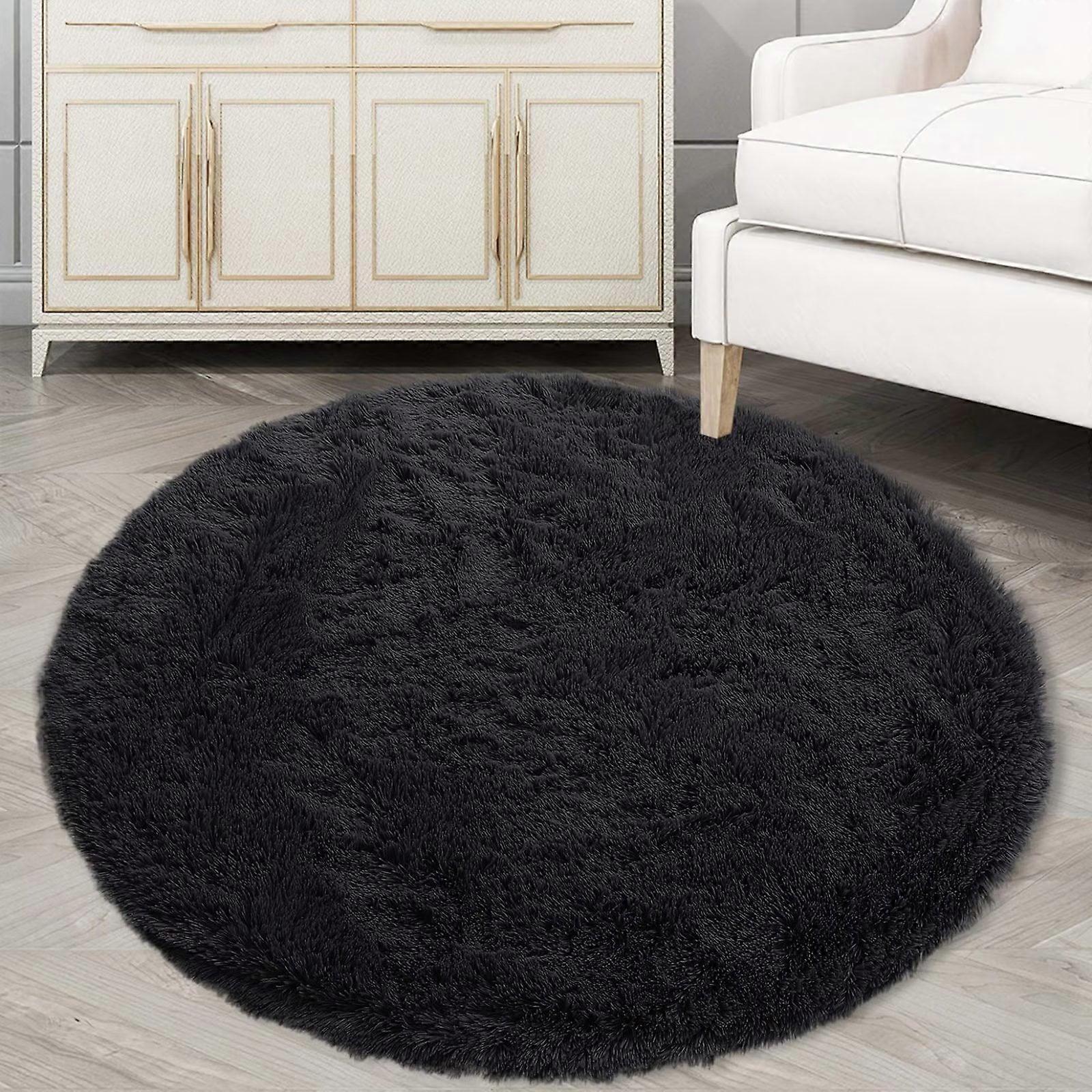 Haperlare 3.3' x 3.3' Black Soft Plush Circle Area Rug Modern Solid Round Rug Fluffy Shag Circular Rug for Nursery Laundry Room