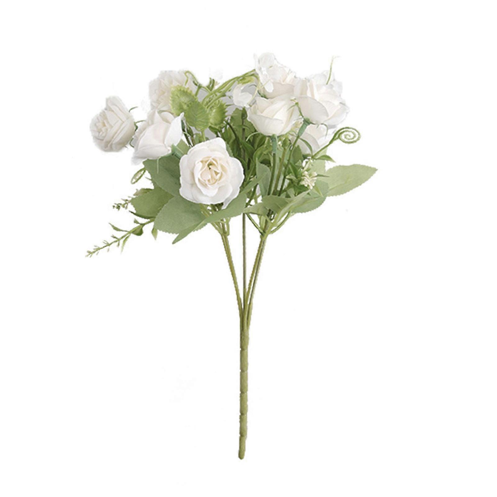 LKWLPD White Roses Artificial Flowers, Silk Rose Bouquet, Pink Home Decor, Wedding Floral Arrangement, Hand Tied Decorative Flowers
