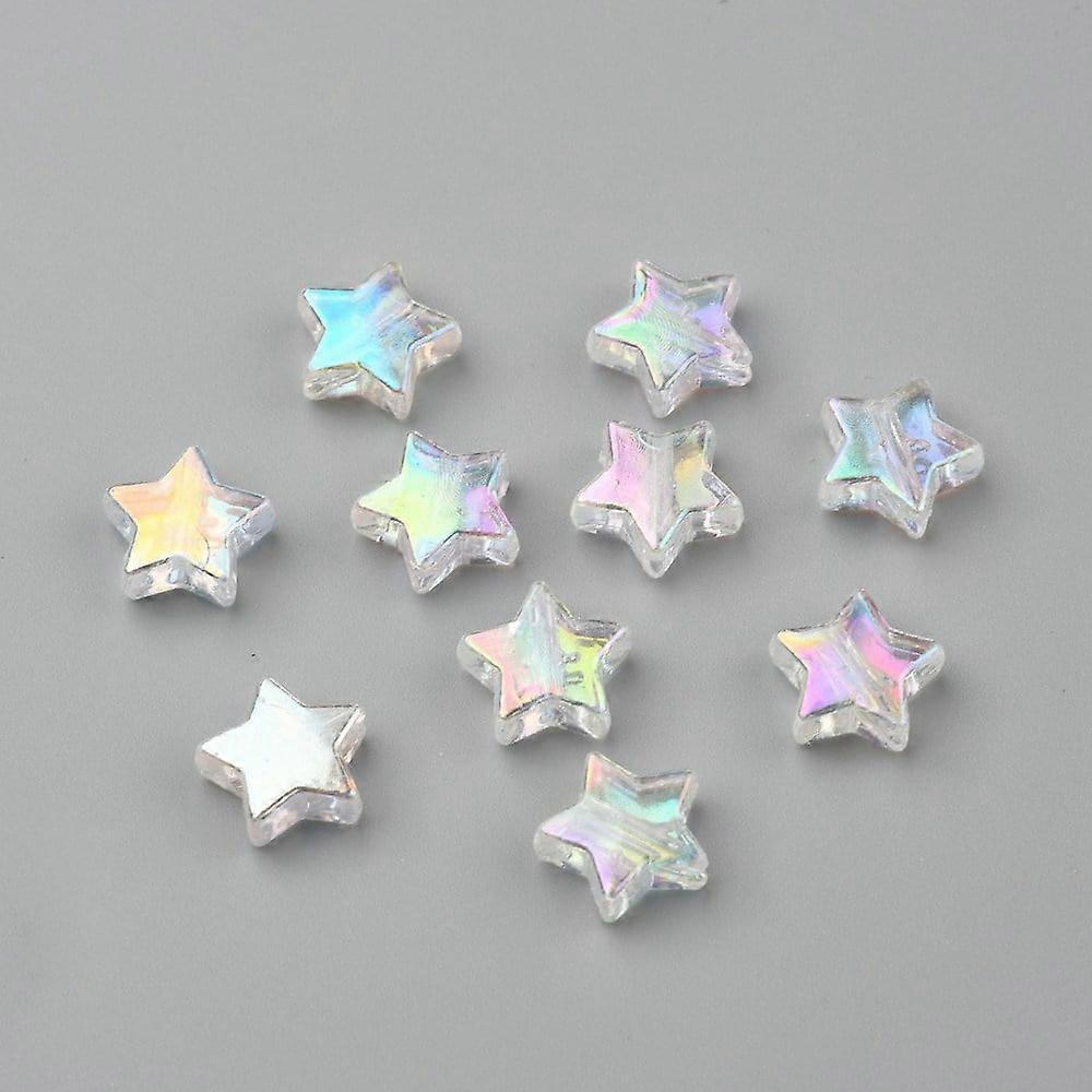 200pc Eco-Friendly Transparent Acrylic Beads Star Clear AB AB Color 10mm in diameter 4mm thick hole:1.5mm