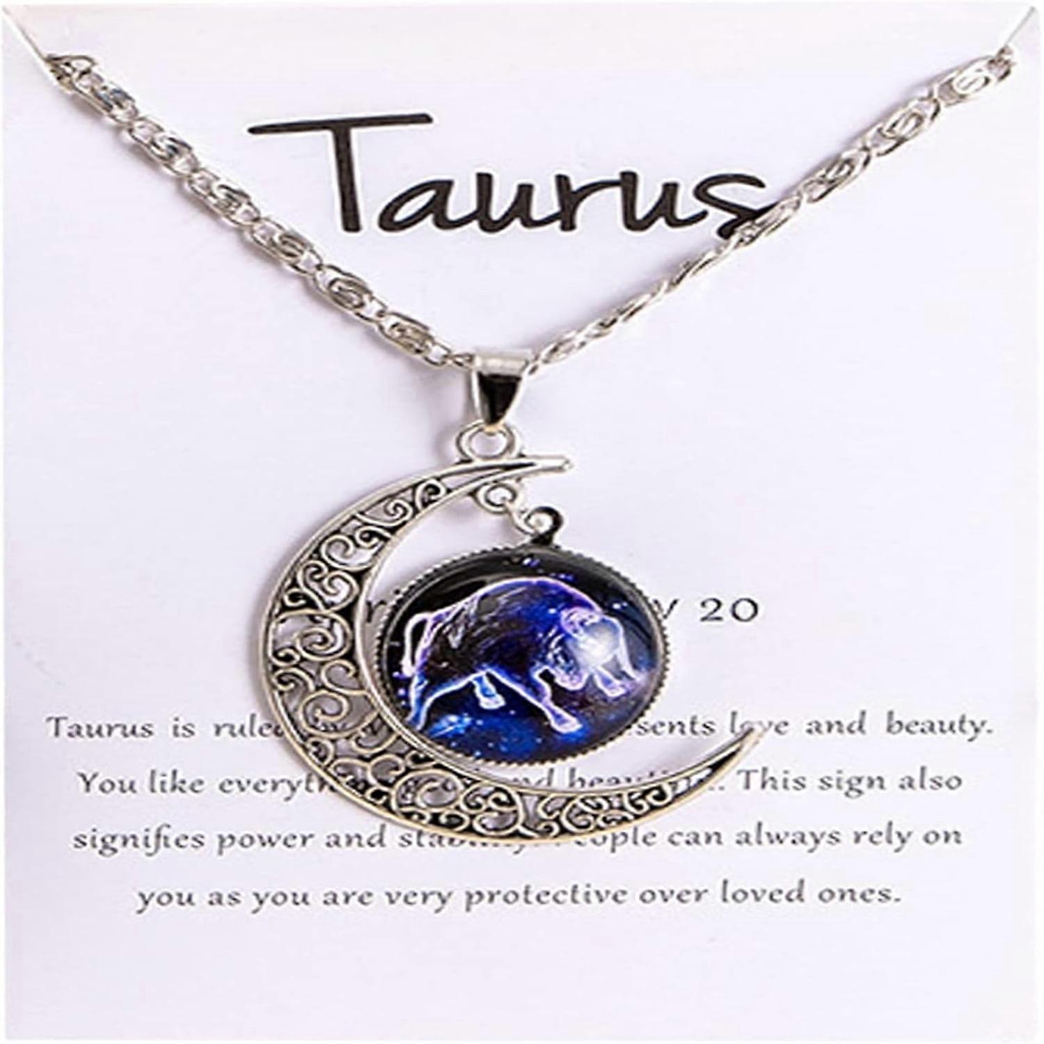 Beautiful Romantic Necklace for Her, Lovely Rhinestone 12 Constellation Pendant, Charming Moon & Star Design - Compatible with Gift Box
