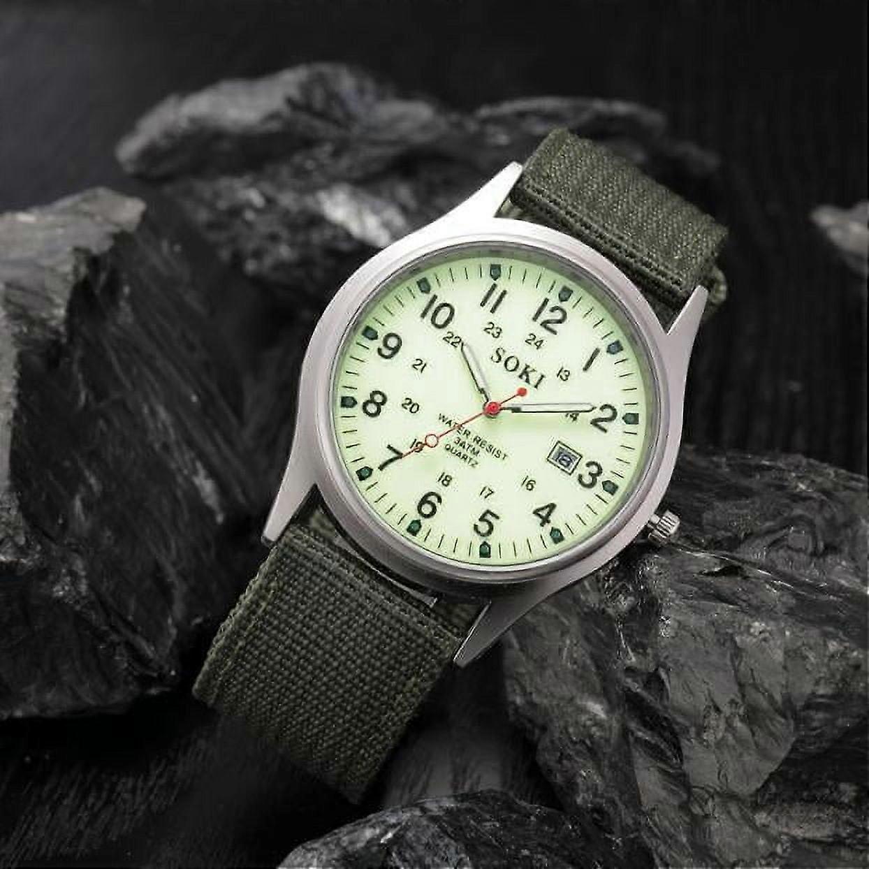WQQZJJ Watch For Men Gifts For Men, Military Army Men's Date Canvas Band Stainless Steel Sport Quartz Wrist Watch WH on Clearance