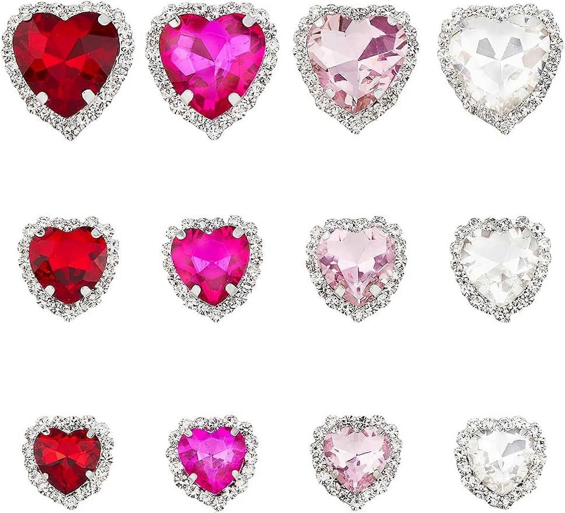 24Pcs Heart Sew On Glass Rhinestones Pink Series, Flat Back Beads Crystal Embellishments for Crafts Clothes Jewelry Making, Hole: 1~1.2mm