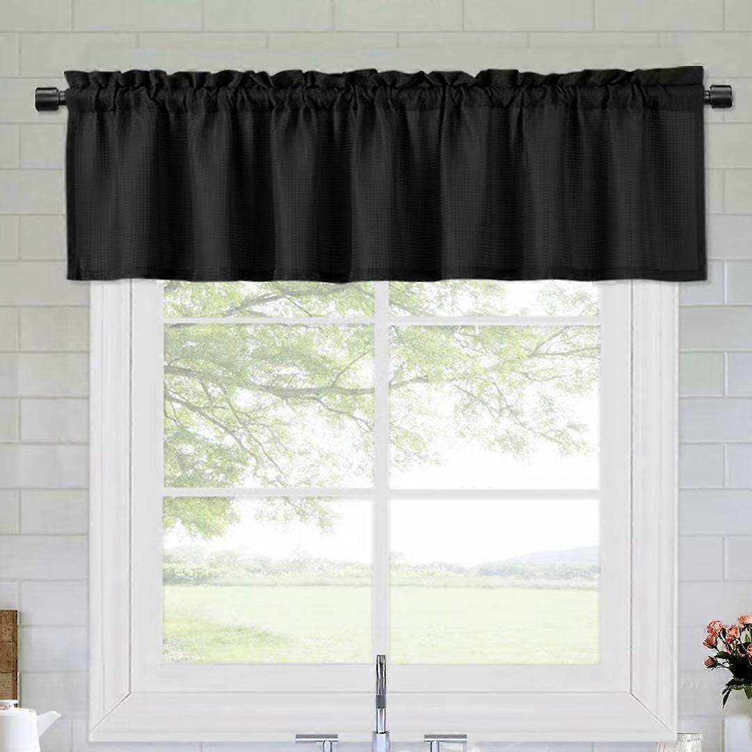 Haperlare Kitchen Curtain Valance 60"W x 15"L Waffle Weave Waterproof Light Filtering Window Valance for Bathroom Cafe, Black, 1 Panel