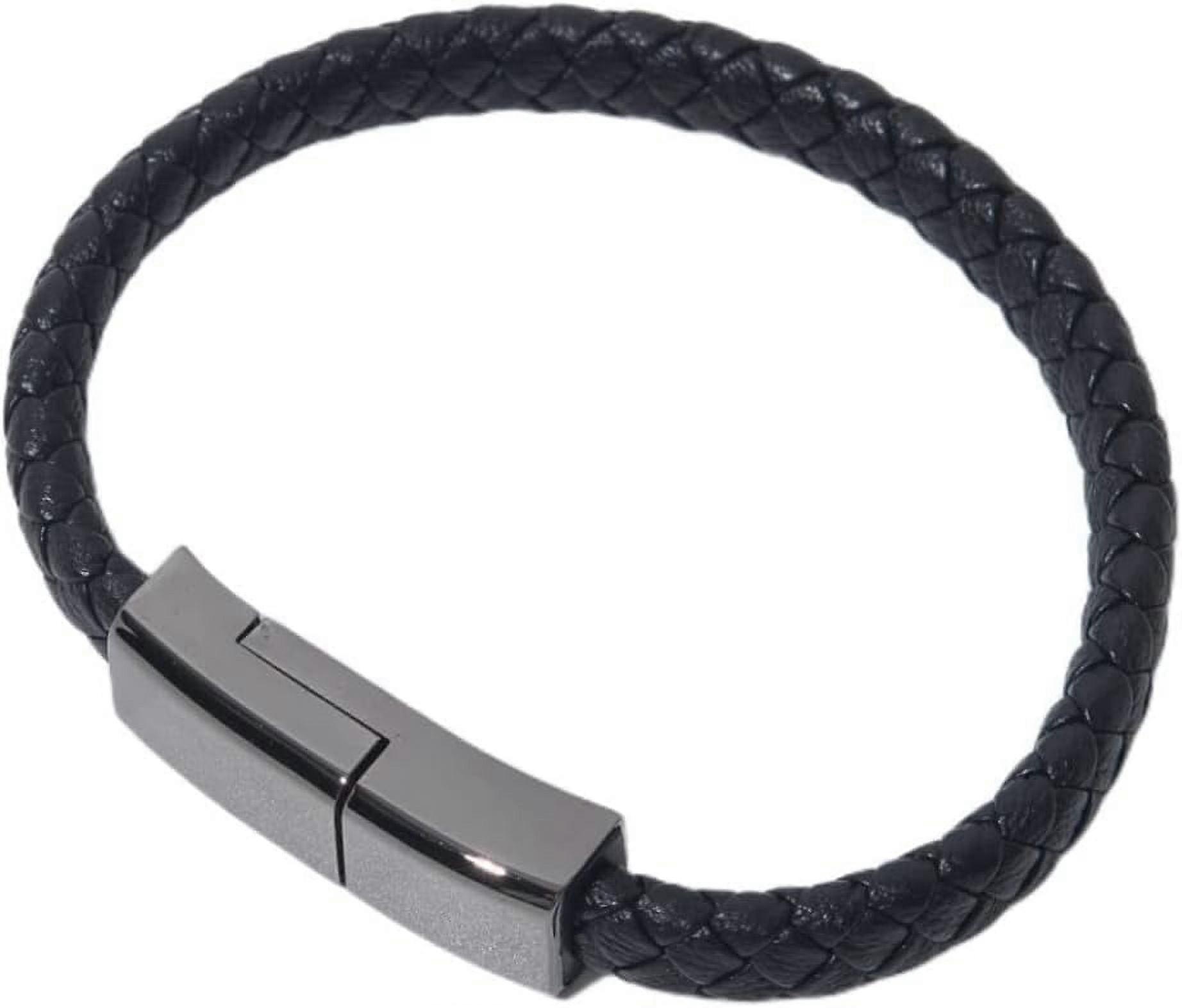 2PCS Charging Bracelet, USB Charger Wristband with Leather Cuff for compatible with iPhone Lightning/Type C/Micro (Black, 8.9")