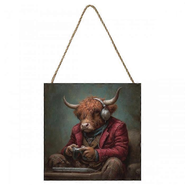 Material: Wood. Length: 20cm. Width: 20cm. Height: 2.7cm. Design: Printed. Hanging Loop.