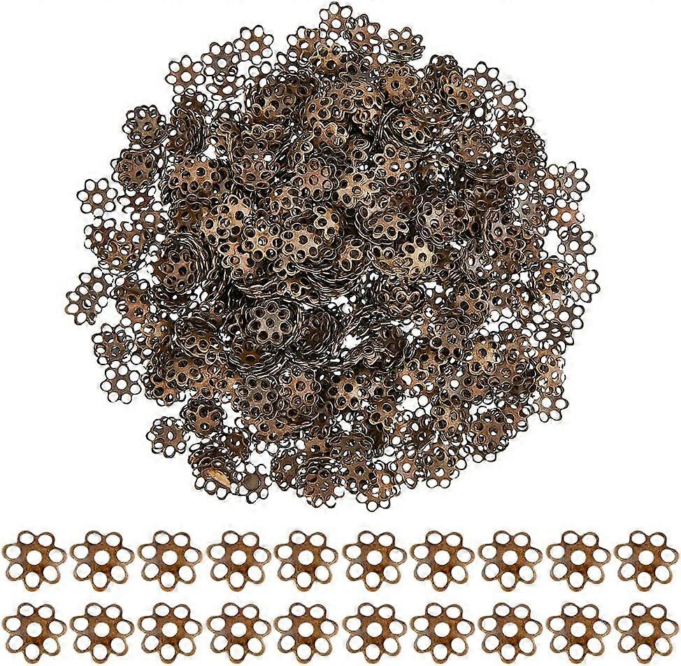 1000Pcs Flower Bead End Caps Antique Bronze, 1mm Hole, Multi-Petal Spacer Beads, Hollow Filigree Iron Caps for Jewelry Making