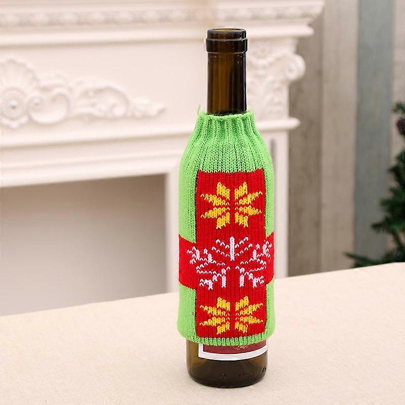 Christmas homewares high-end knitted Christmas beer bottle cover Christmas beer bottle decoration wine bottle cover green snowflakes