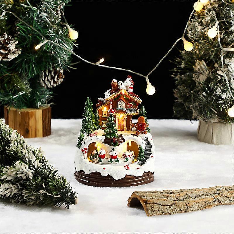 A variety of Christmas rotating resin luminous music box ornaments rotating small train decorations Christmas gifts single roof cookie man
