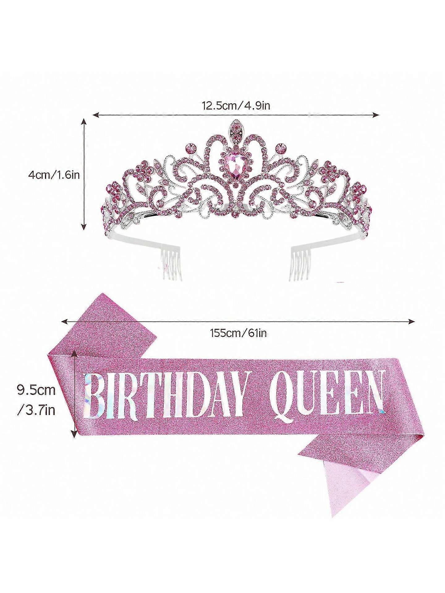 Rhinestone BIRTHDAY QUEEN GIRL Queen Princess Love Birthday Crown Shoulder Strap Party Supplies Rose Red Crown Shoulder Strap QUEEN