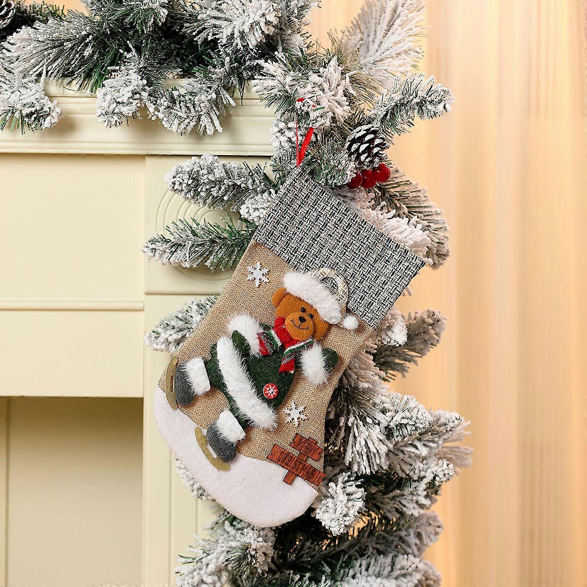 New Large Flannel 3D Cartoon Christmas Socks Christmas Gift Bag Christmas Socks Christmas Tree Ornament Bear [32*19*1cm51g]