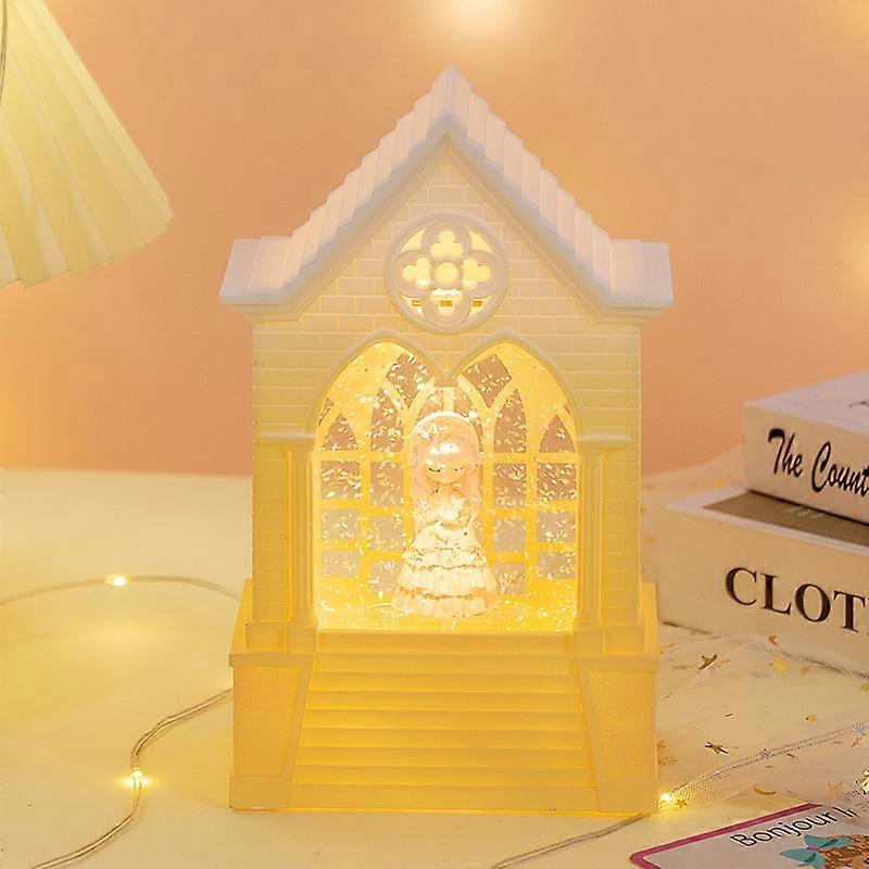 New Music Box LED Lighting Crystal Lamp Valentine's Day Gift Friend Girlfriend Birthday Gift Arched House - Gradual Yellow Straw Hat Girl