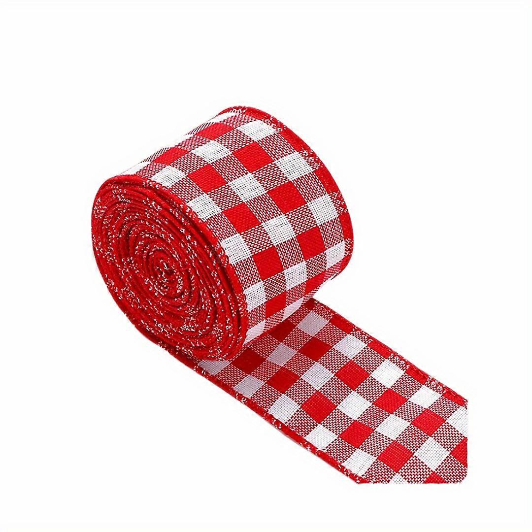 2 Christmas red and white plaid ribbon DIY packaging gift making bow Christmas scene decoration supplies Christmas ribbon A