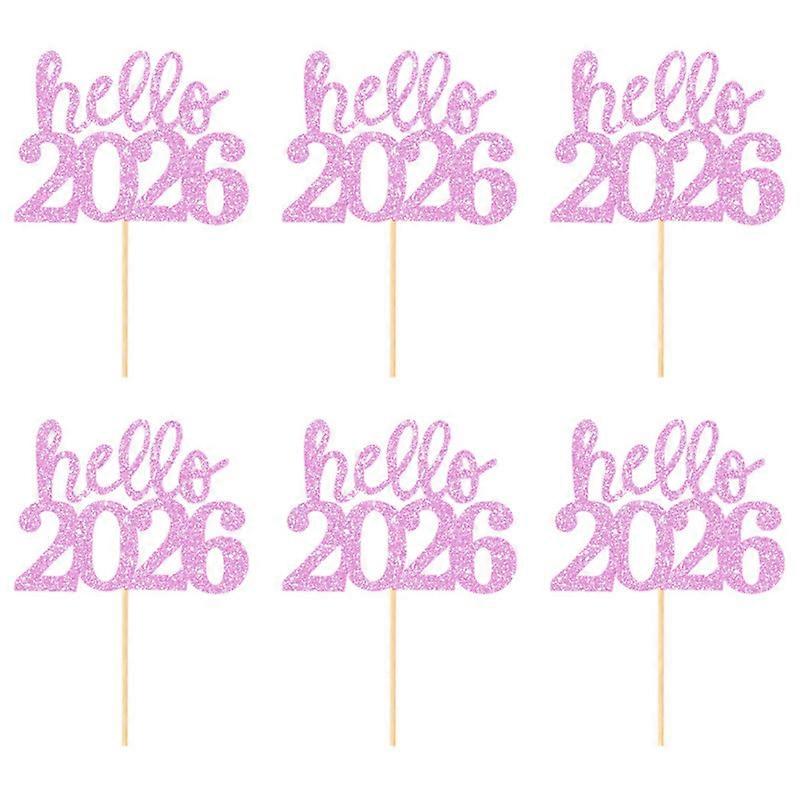 New Arrival Cake Inserts for New Year's Decorations, Spring Festival Cake Decorations, Hello 2026 (Pink), 6 Pieces per Pack
