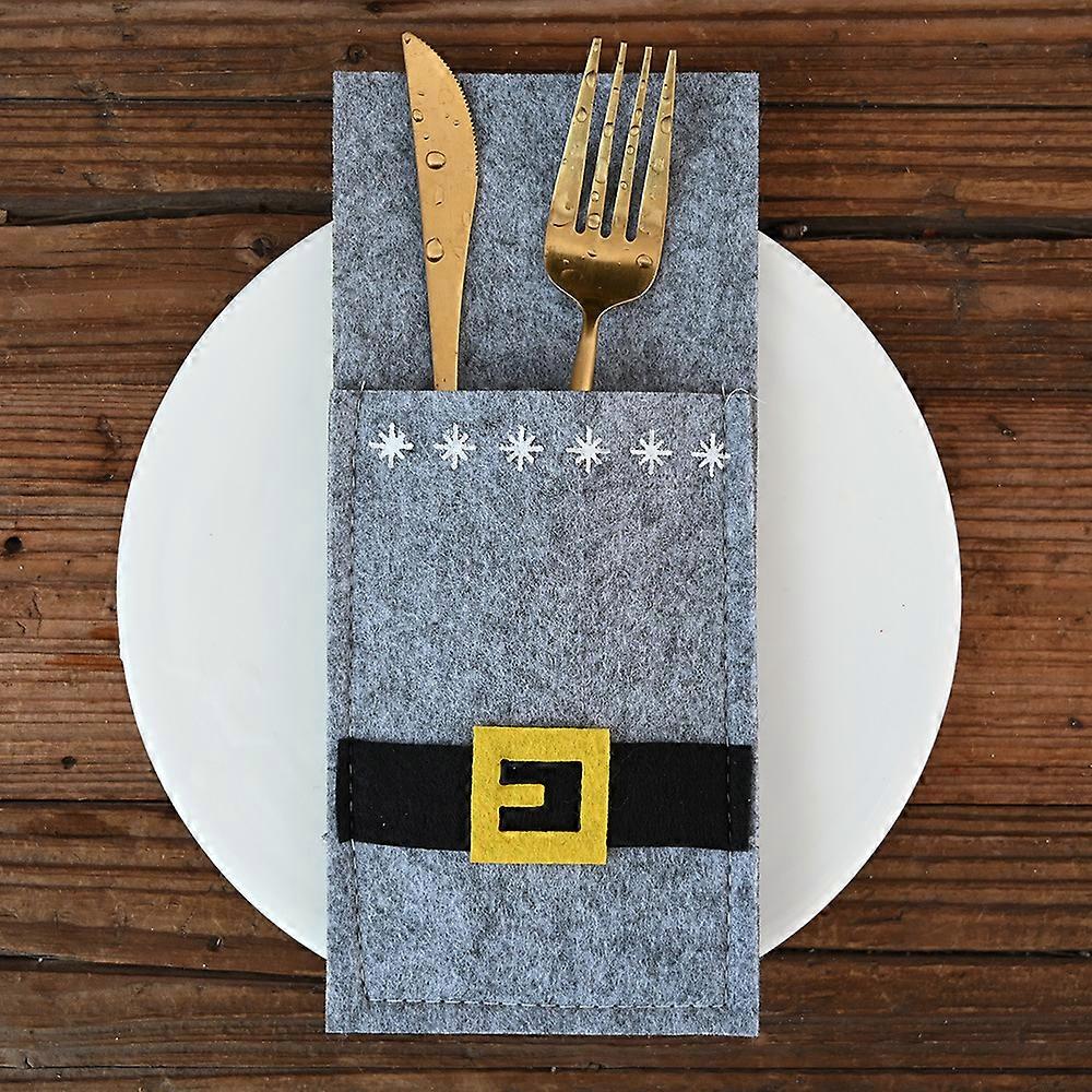 New Christmas decorations belt knife and fork set table decoration cutlery set bag belt knife and fork set gray (knife and fork not included)