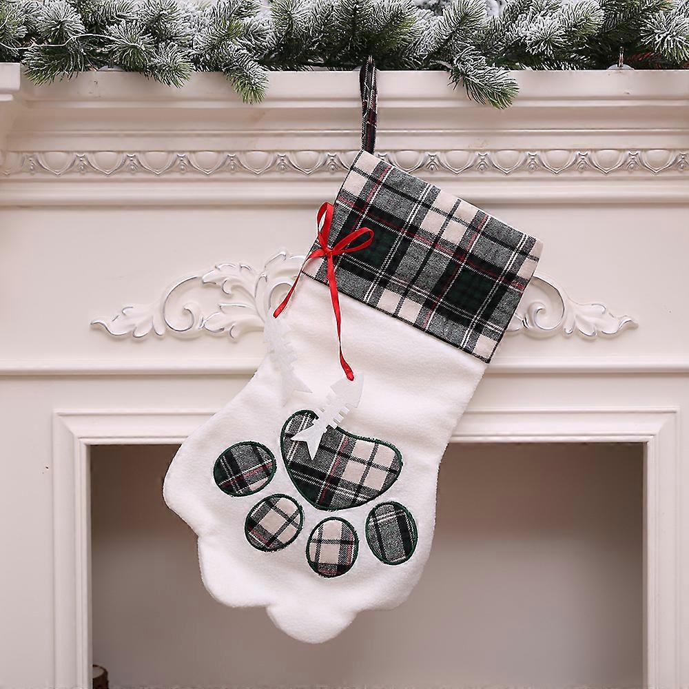 New arrival Christmas decorations Christmas socks fish bone cat claw socks creative candy bag gift bag cat claw Christmas socks dark green