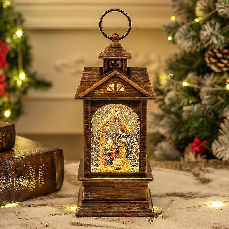New Music Box LED Lighting Crystal Lamp Christmas Ornaments Night Light Christmas House Water Lantern - Garmen Jesus - 10.5cm/10.5cm/23.5cm