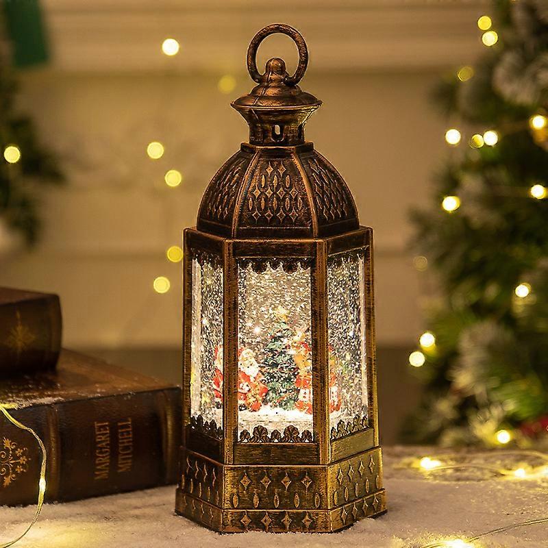 New Christmas hexagonal wind lantern with snow crystal ball music box Christmas gift desktop ornaments night light new hexagonal old man tree