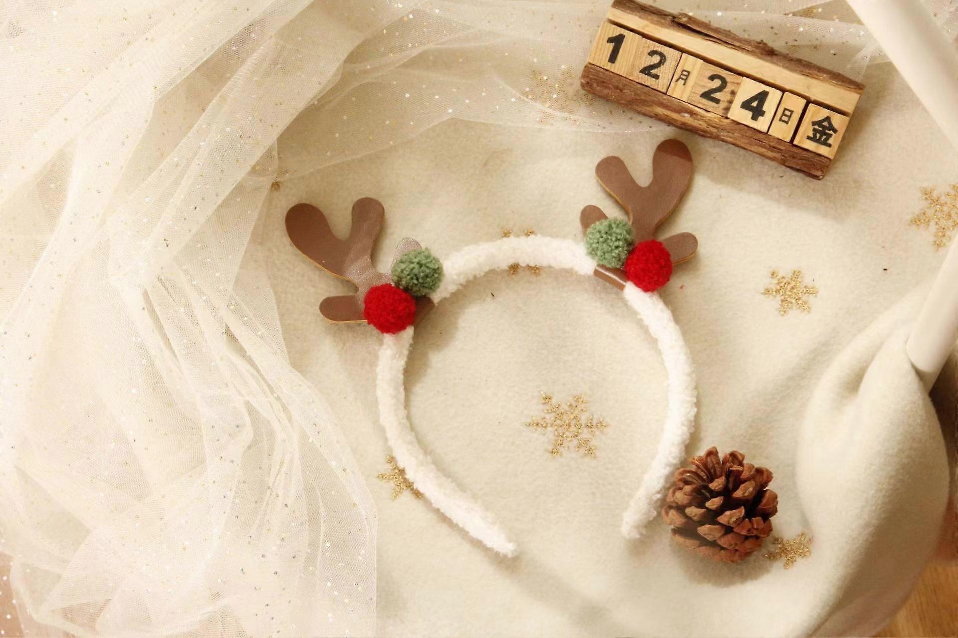 Deer antler headband elk Christmas headdress colorful fur ball leather antler hair accessories cute girly holiday gift leather antler headband