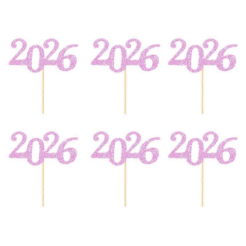 New Cake Inserts for New Year Decorations, Spring Festival Cake Decorations, New Year's Eve Decorations, Style 2: 2026 Pink, 6 Pieces per Pack