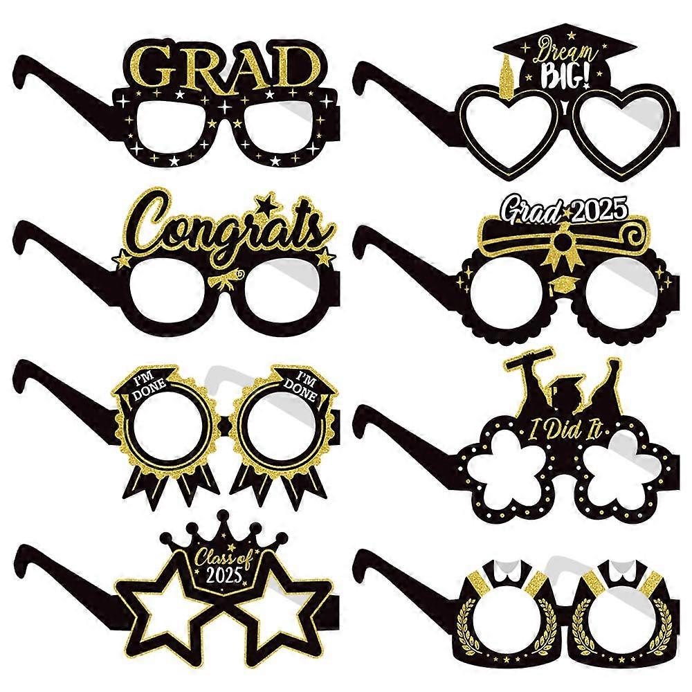 New Graduation Season Photo Props Paper Glasses Black Gold Graduation Ceremony Party Decoration Props Supplies 8pcs/bag, Y-00208