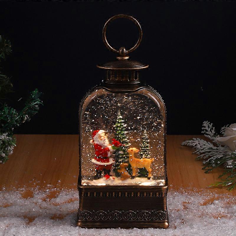 Christmas decorations night light portable oil lamp snow old man wind lamp music box scene decoration gift D3-2 flat lantern brush gold old man