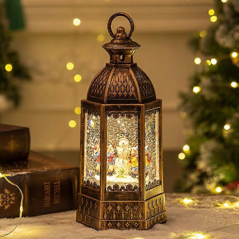 New Christmas hexagonal wind lantern with snow crystal ball music box Christmas gift desktop ornaments night light new hexagonal snowman children